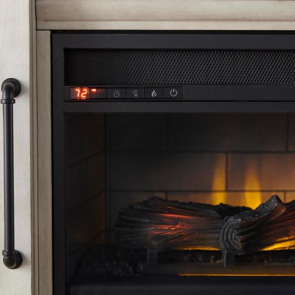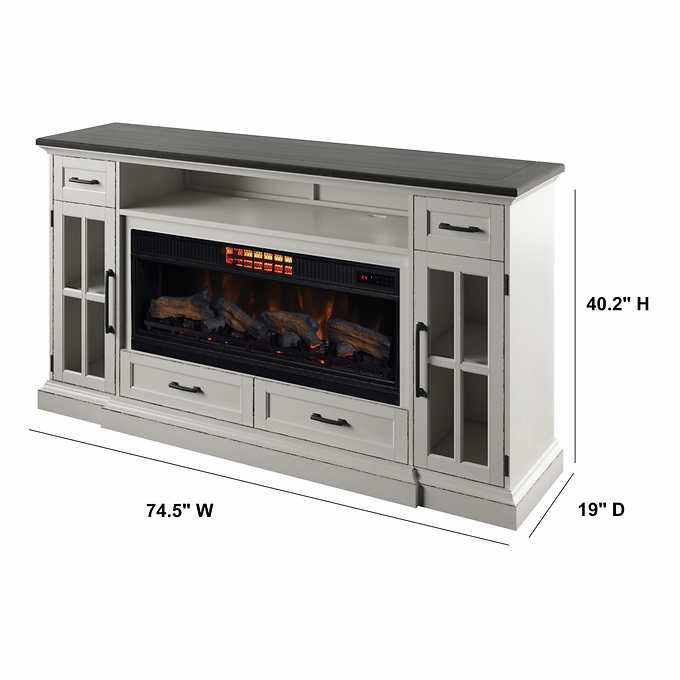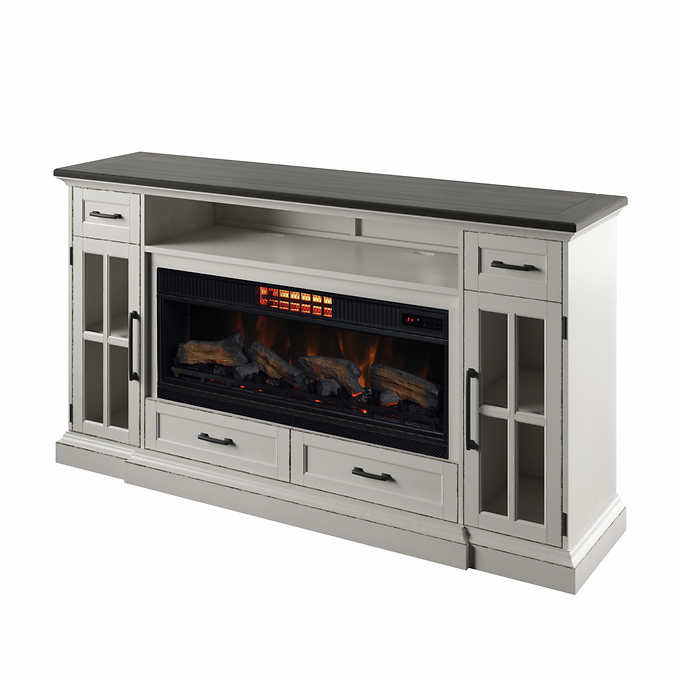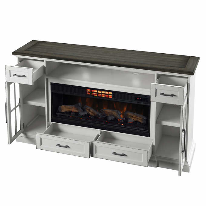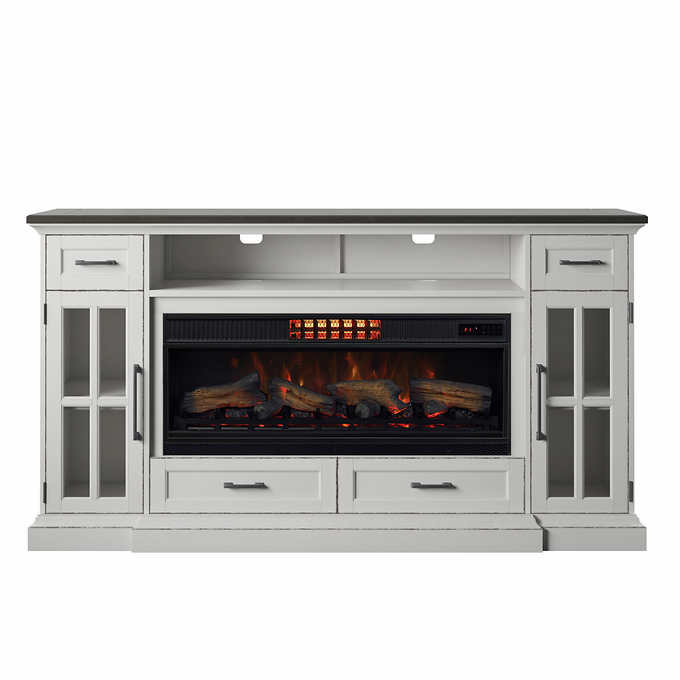 Cecily 72 in. Freestanding Electric Fireplace TV Stand in Antique White with Warm Charcoal Top Finish