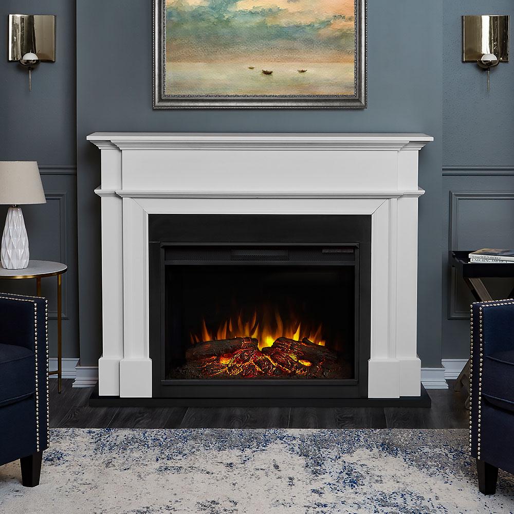Harlan Grand Infrared Electric Fireplace Mantel Package in White- 8060E-W
