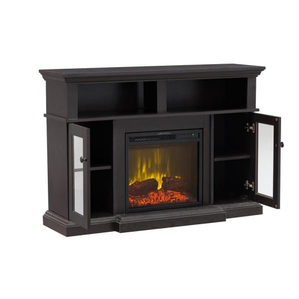 46 in. Media Electric Fireplace with Glass Cabinet Doors in Espresso