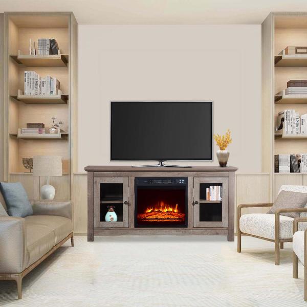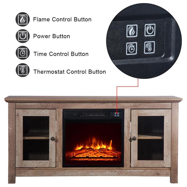 51 in. Freestanding Wooden Electric Fireplace TV Stand with Remote Control in Wood Color