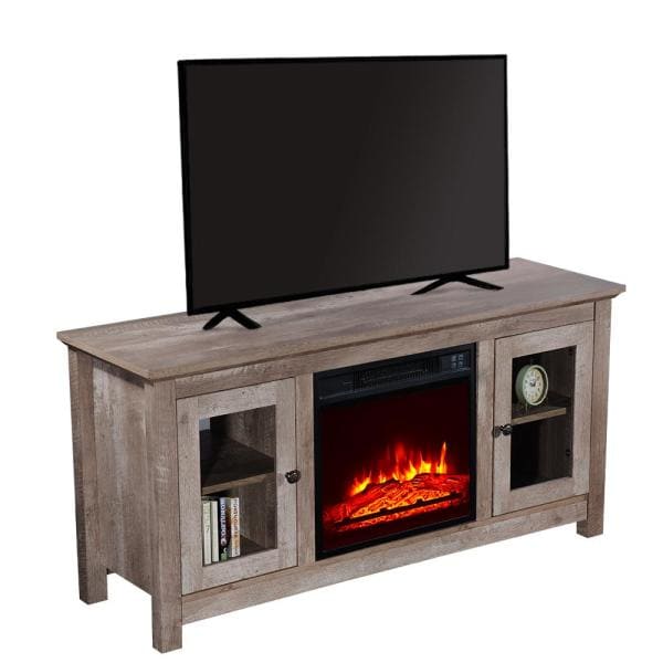 Sawyer 58 in. Gray Oak TV Stand Fits TV's up to 65 in. with Crystal Fireplace Insert