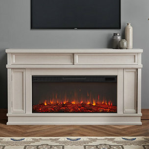 70 in. Saw Cut Off White Fireplace TV Stand for TV Up to 75 in.