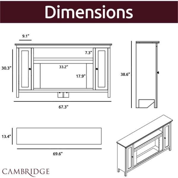 Somerset 70 in. White Electric Fireplace TV Stand in Multi-Color with LED Flames Crystal Rock Display and Remote Control