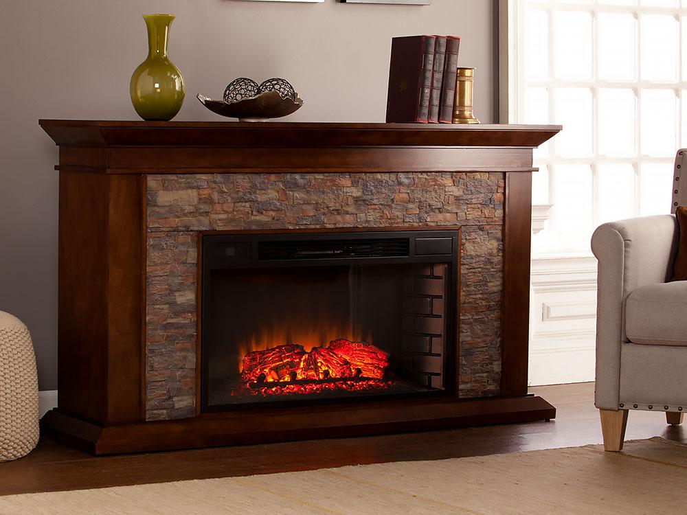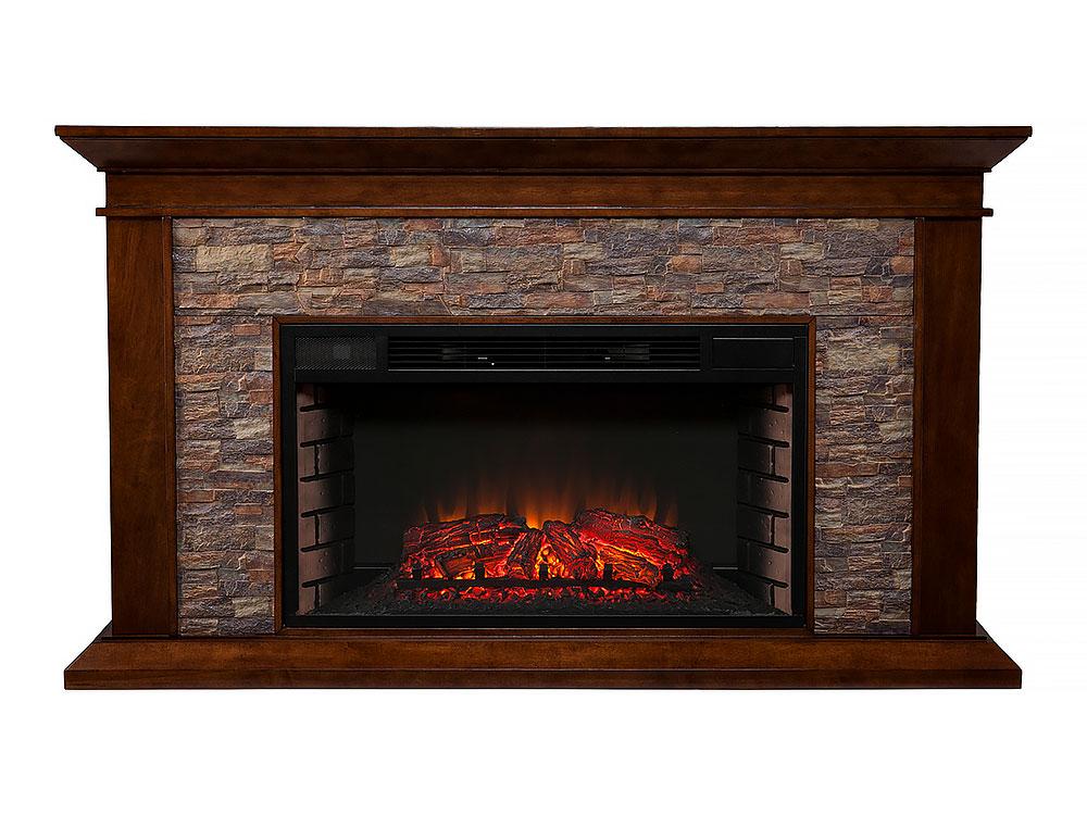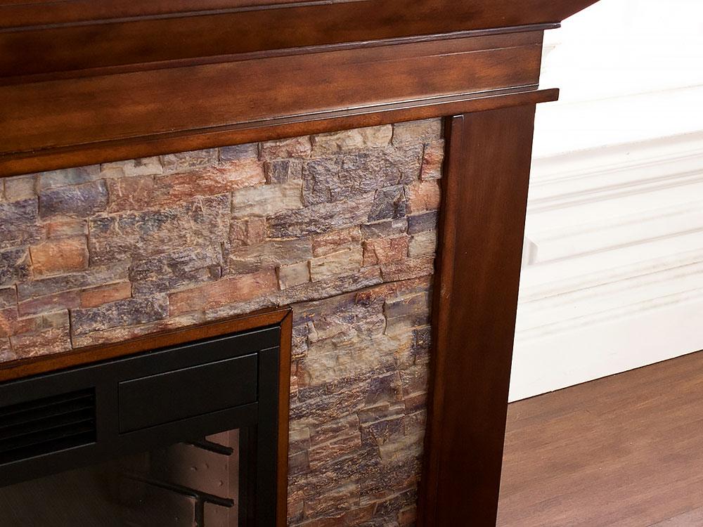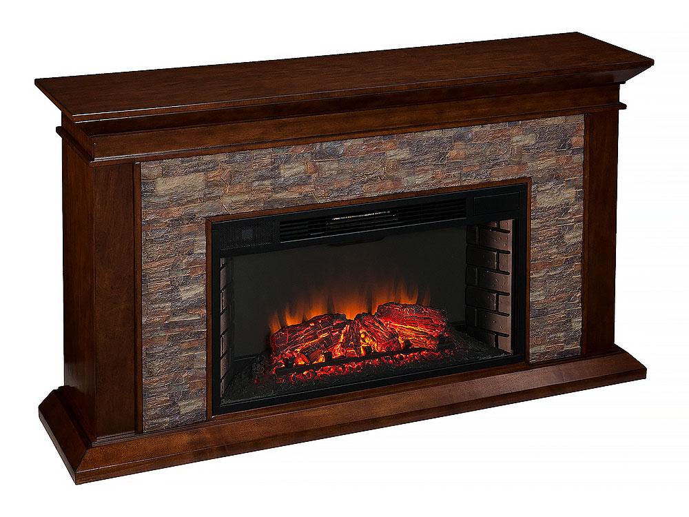 Auburn 45.5 in. Faux Stone Media Electric Fireplace TV Stand in Brown Sienna