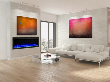 Somerset 70 in. Electric Fireplace with Crystal Rock Display in Blue