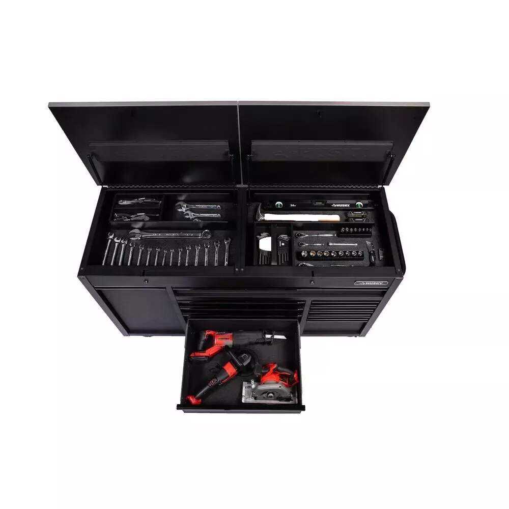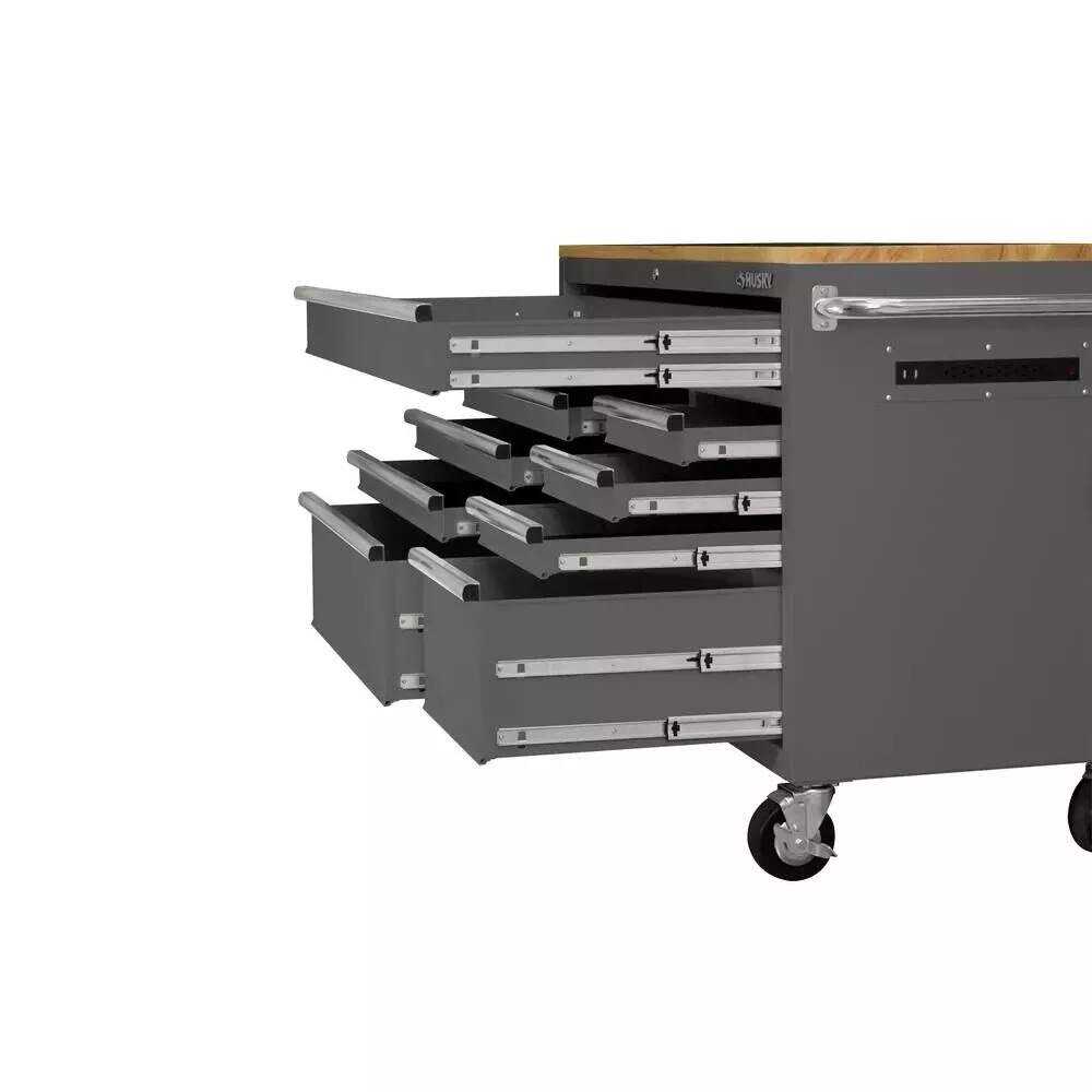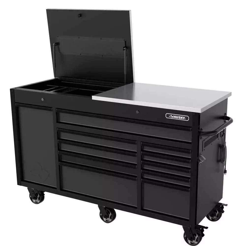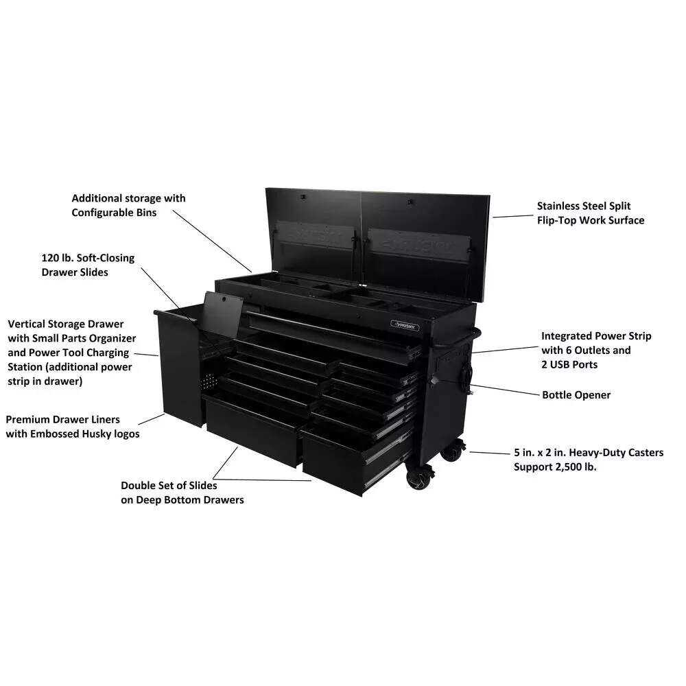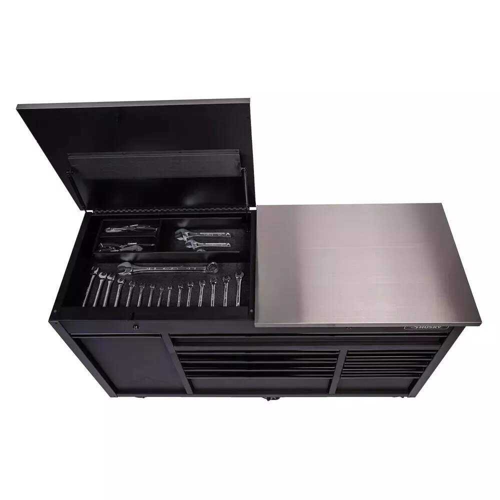 Husky 63 in. W x 23 in. D Heavy Duty 11-Drawer Mobile Workbench Cabinet with Flip-Top Stainless Steel Top in Matte Black