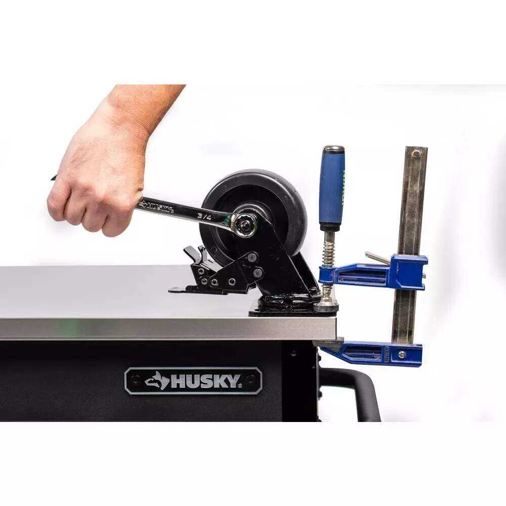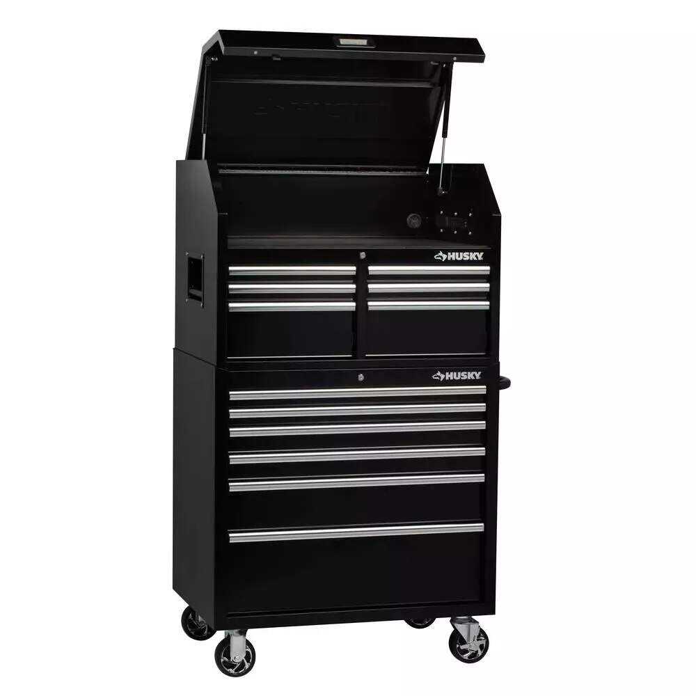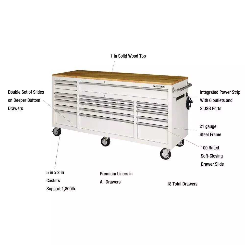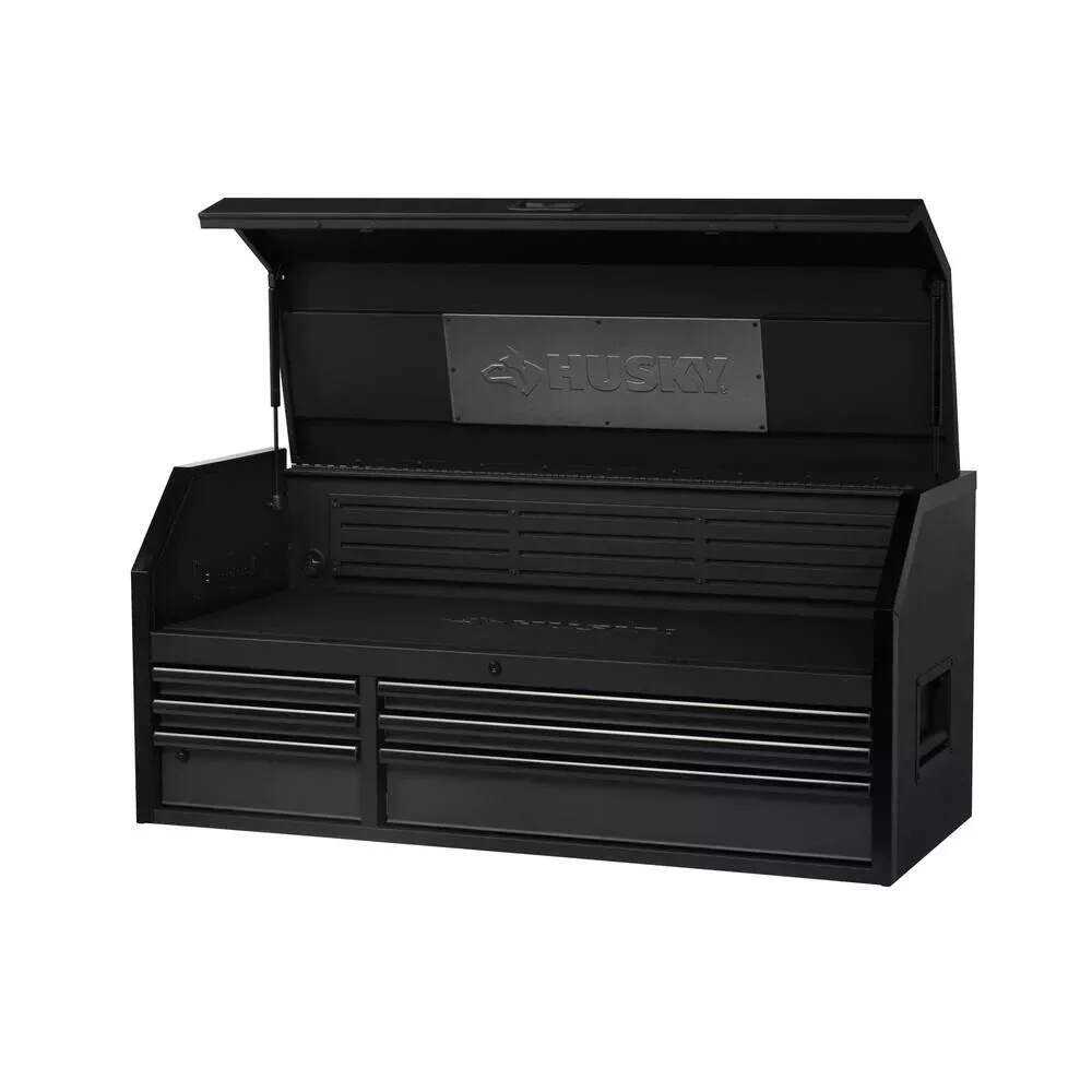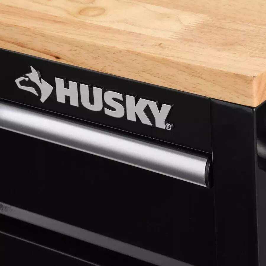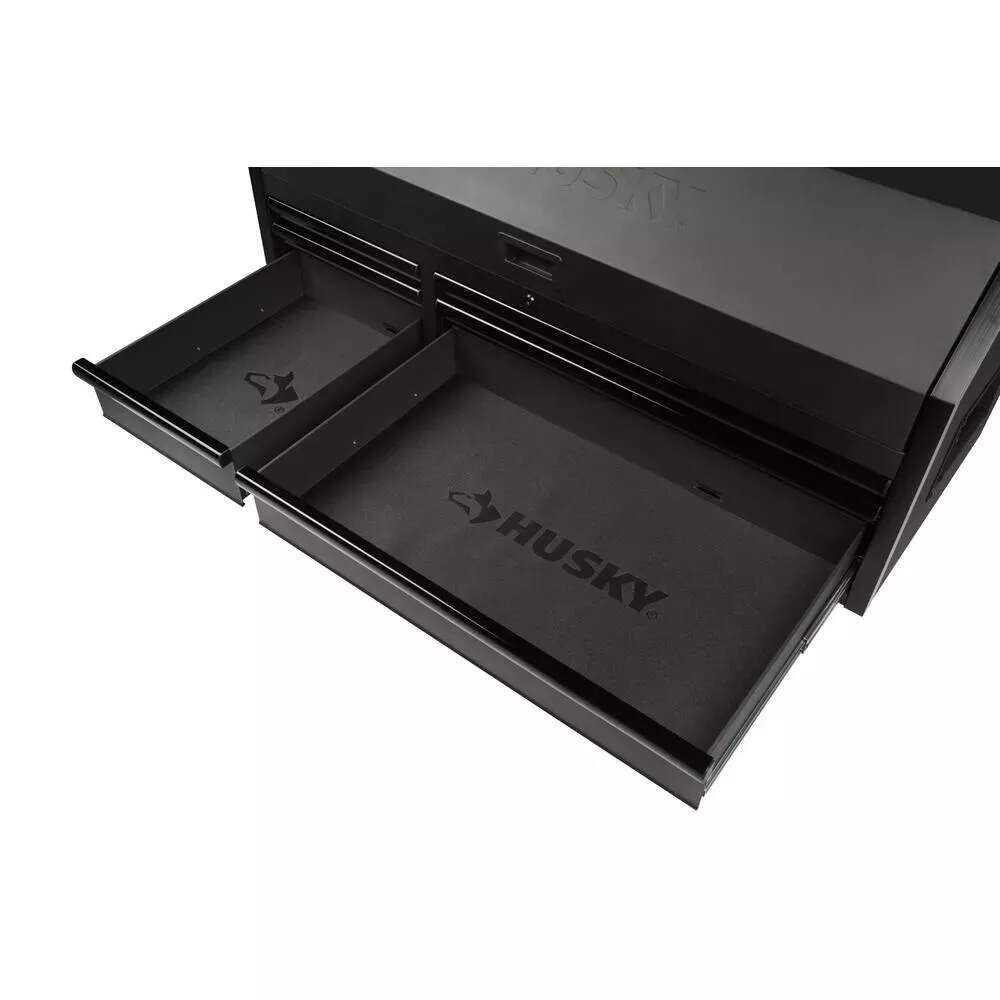 Husky 63 in. W x 23 in. D Heavy Duty 11-Drawer Mobile Workbench Cabinet with Flip-Top Stainless Steel Top in Matte Black