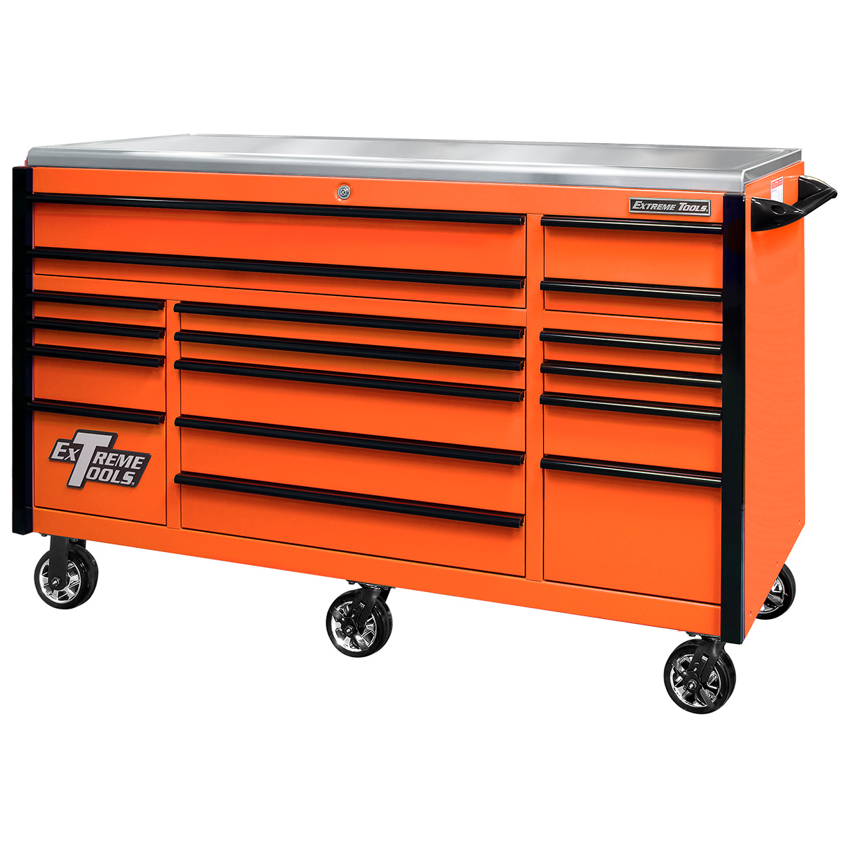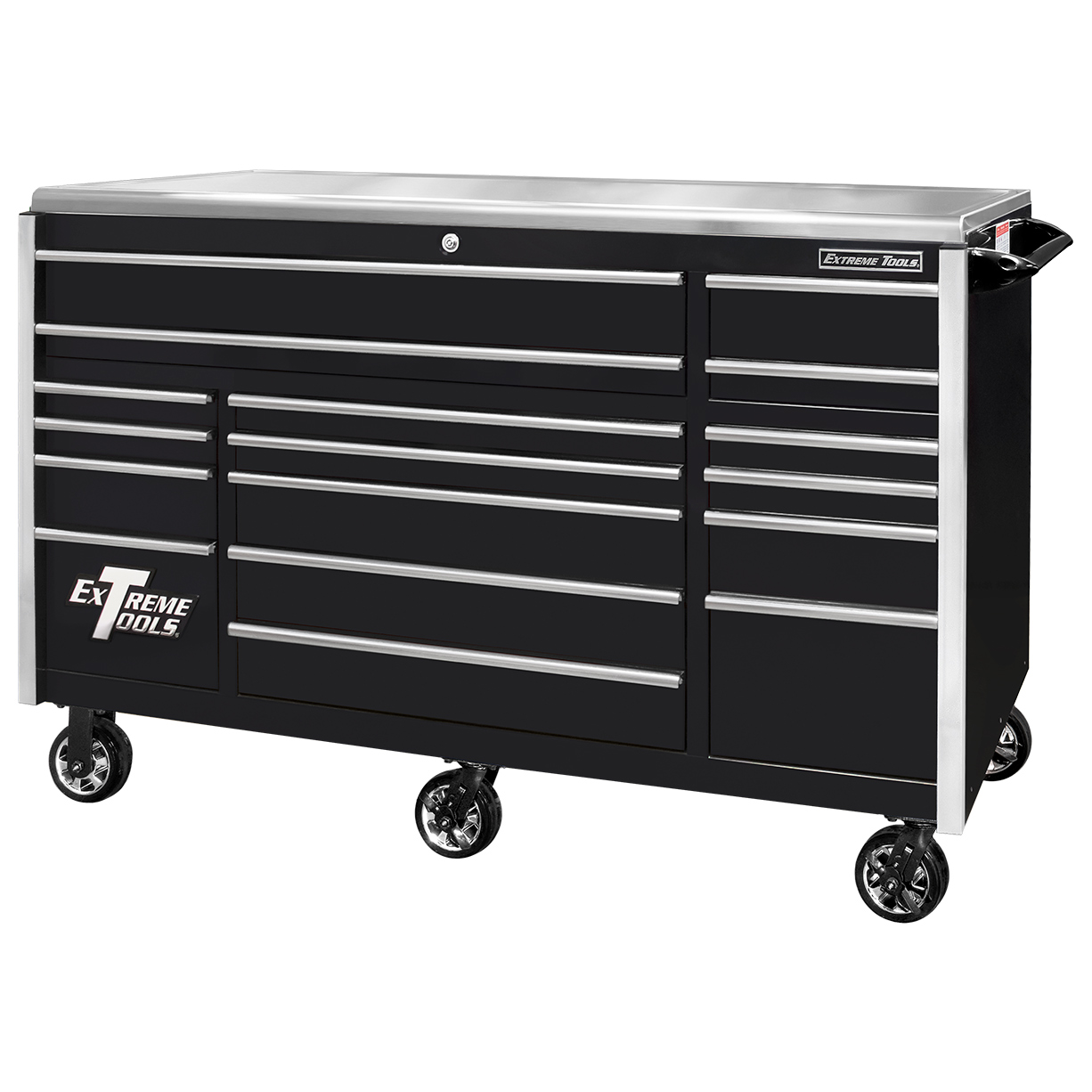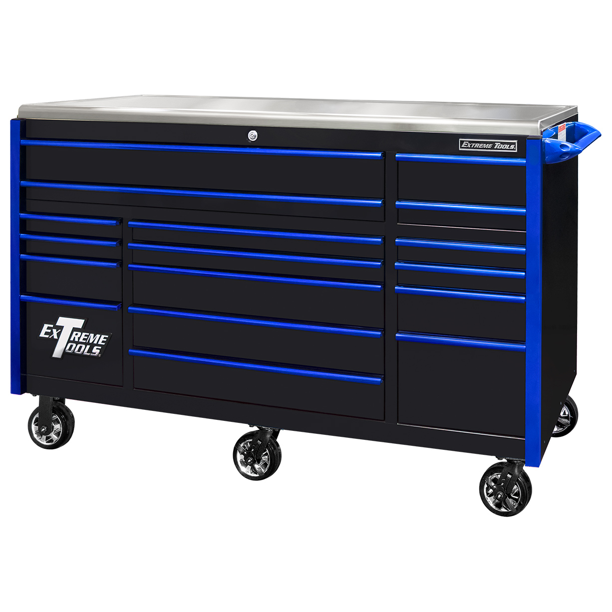 Extreme Tools Professional EXQ 72″ Quick Release 17-Drawer Triple Bank Roller Cabinet