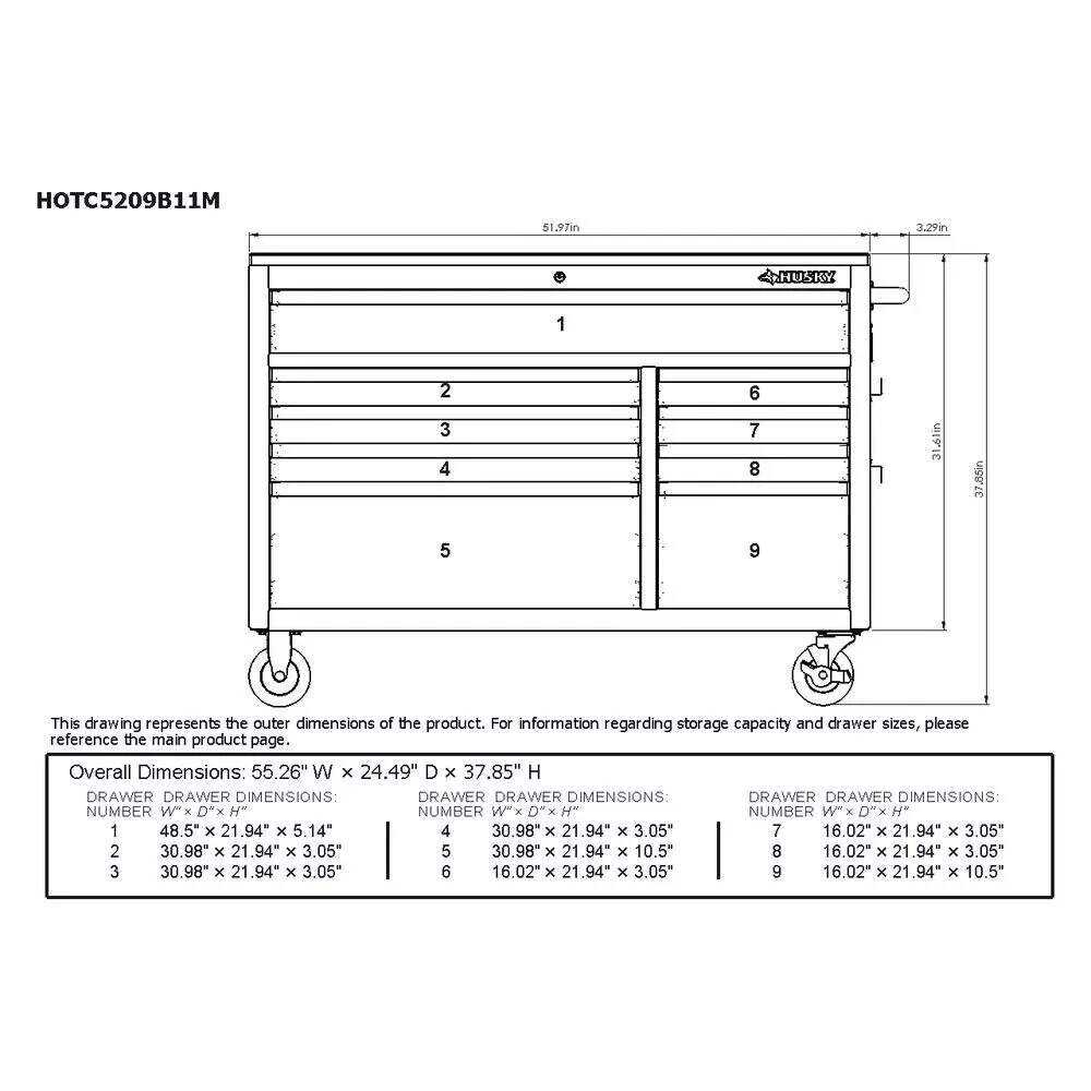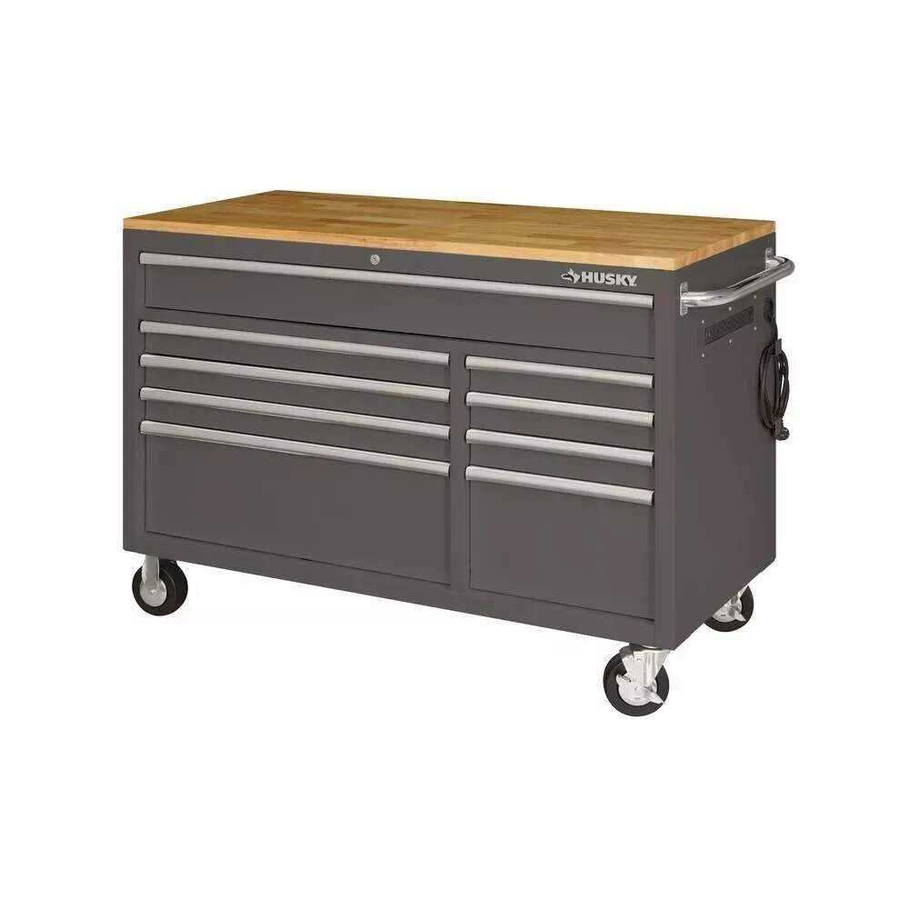 52 IN. 9-DRAWER MOBILE WORKBENCH IN GLOSS GRAY