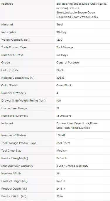 36 IN. W 12-DRAWER, DEEP COMBINATION TOOL CHEST AND CABINET SET IN GLOSS BLACK