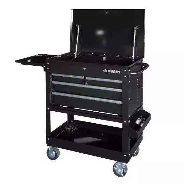 33 IN 4-DRAWER MECHANICS CART WITH EXTENDED SIDE TABLE AND BOTTLE TRAY