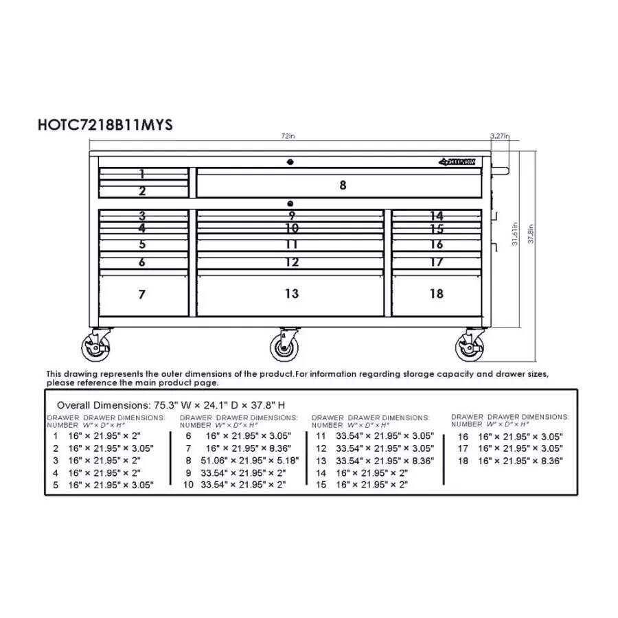 72 IN. 18-DRAWER MOBILE WORKBENCH WITH SOLID WOOD TOP, BLACK