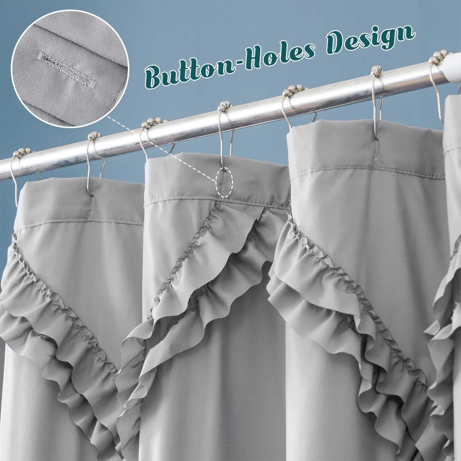 • HIG Luxurious Farmhouse Unique Ruffle Cloth Fabric Shower Curtain 72x72 Extra Long Bathroom Curtain