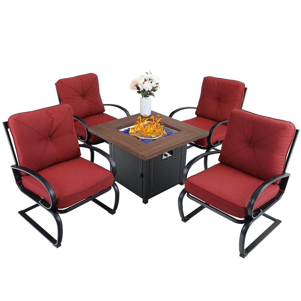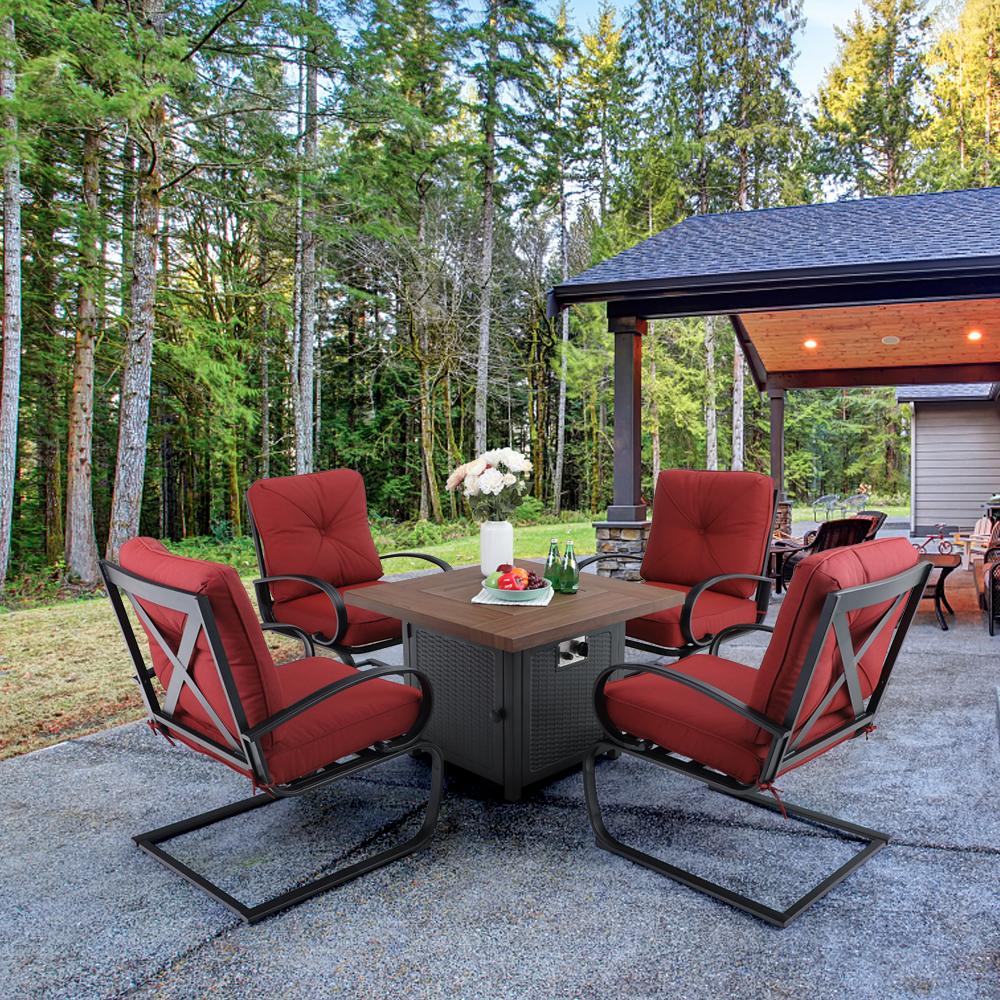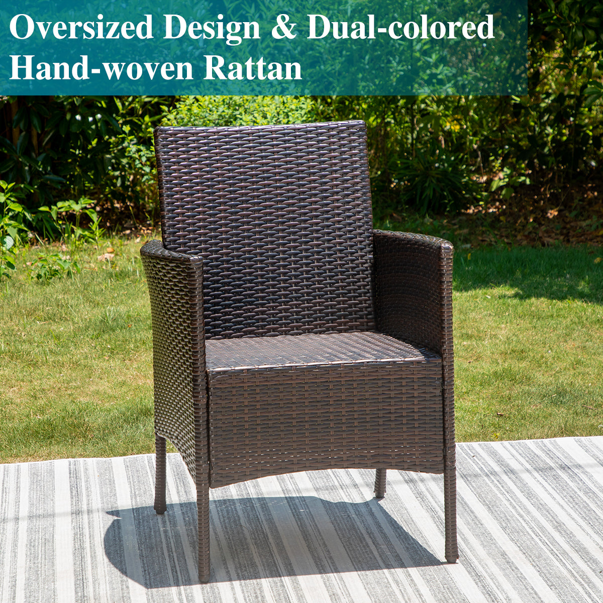 6 Piece Outdoor Dining Set with Acacia Wood Table & Wooden Bench and 4 Cushioned Rattan Wicker Chairs