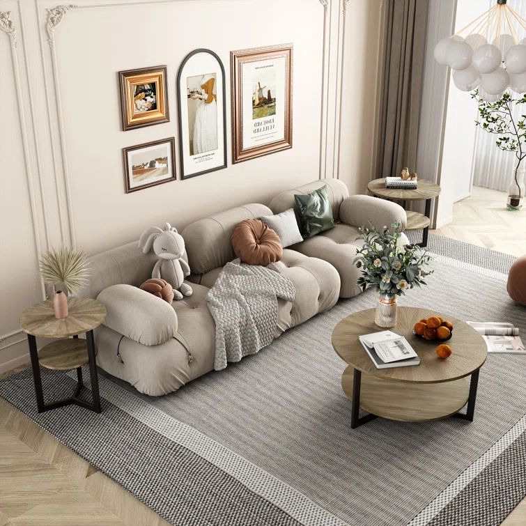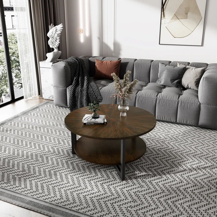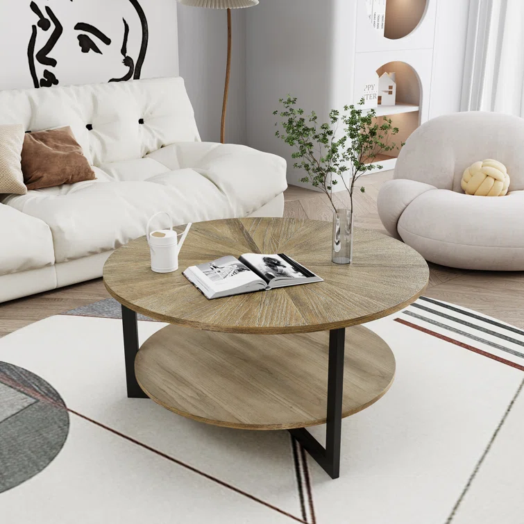 A 2-tier round coffee table provides spacious space for the living room, gives extra space to save, and makes your home clean and tidy. using solid wood material makes the coffee table more durable. The legs of the coffee table are sturdy. Rugged materials for long-term use, waterproof and wear-resistant, the Multi-step finish process achieves both good looks and superior durability. The important is easy to assemble.