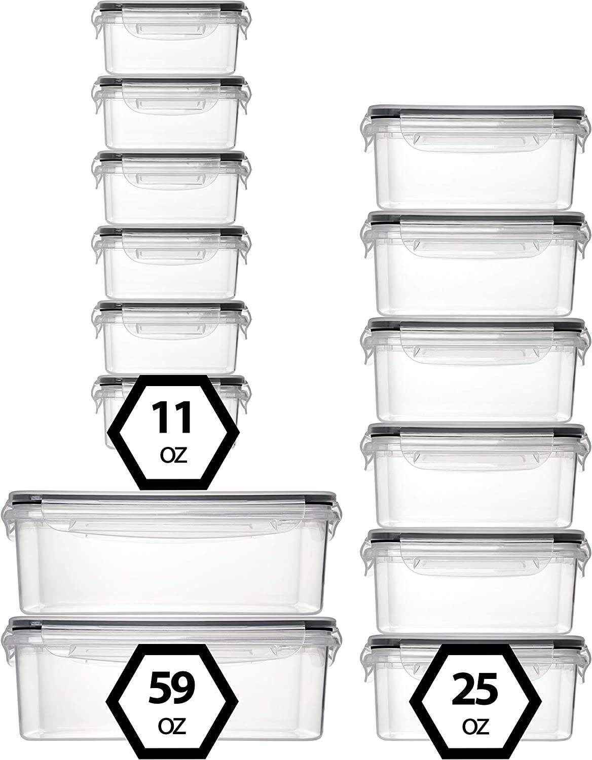 - Perfect for portion sizing - designed with you in mind. This 50 piece set includes 24 containers with 24 lids Food Storage Containers. sticky labels and a chalk pen are great for kitchen & pantry organization and storage.