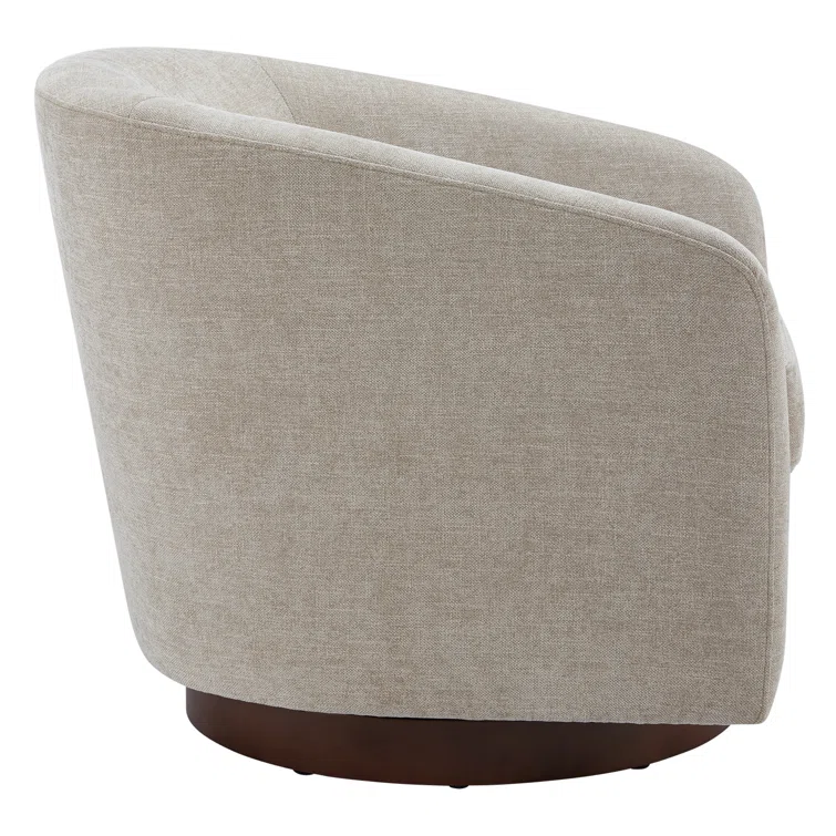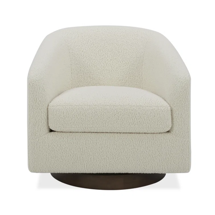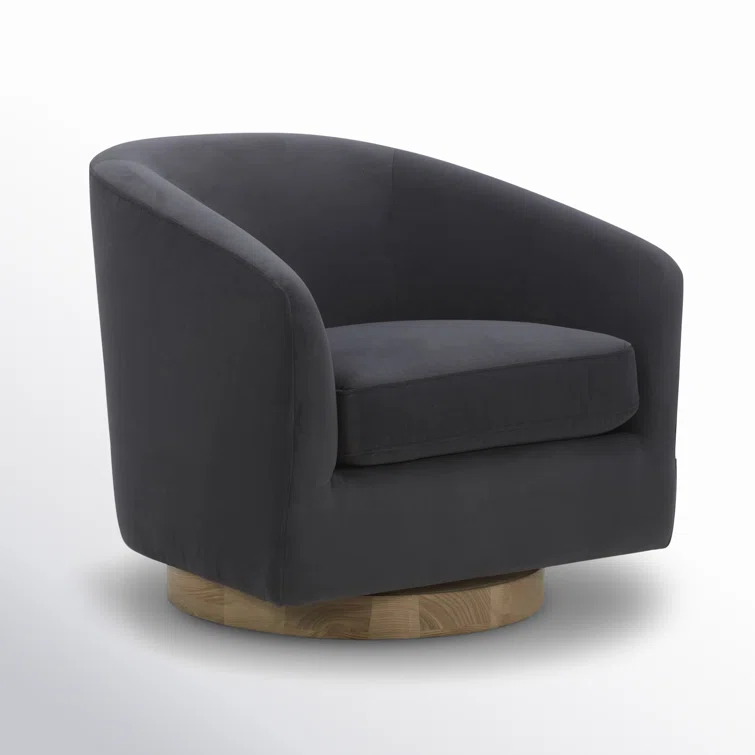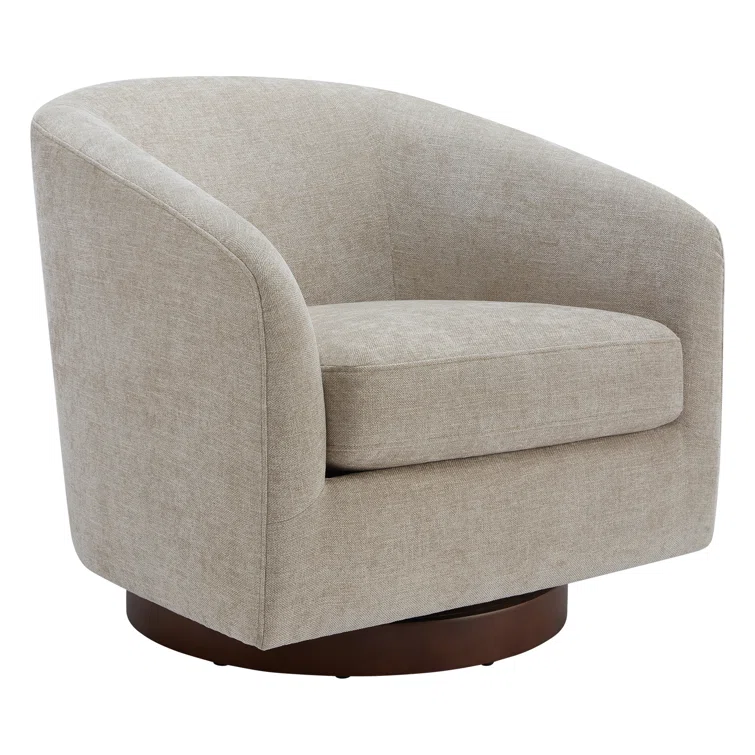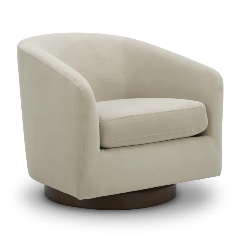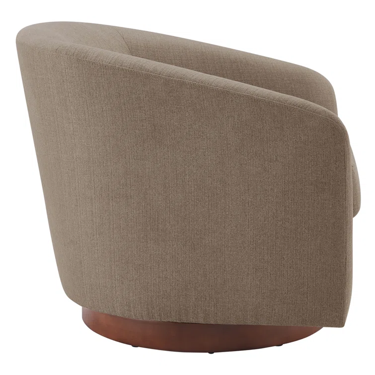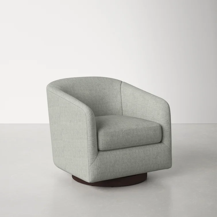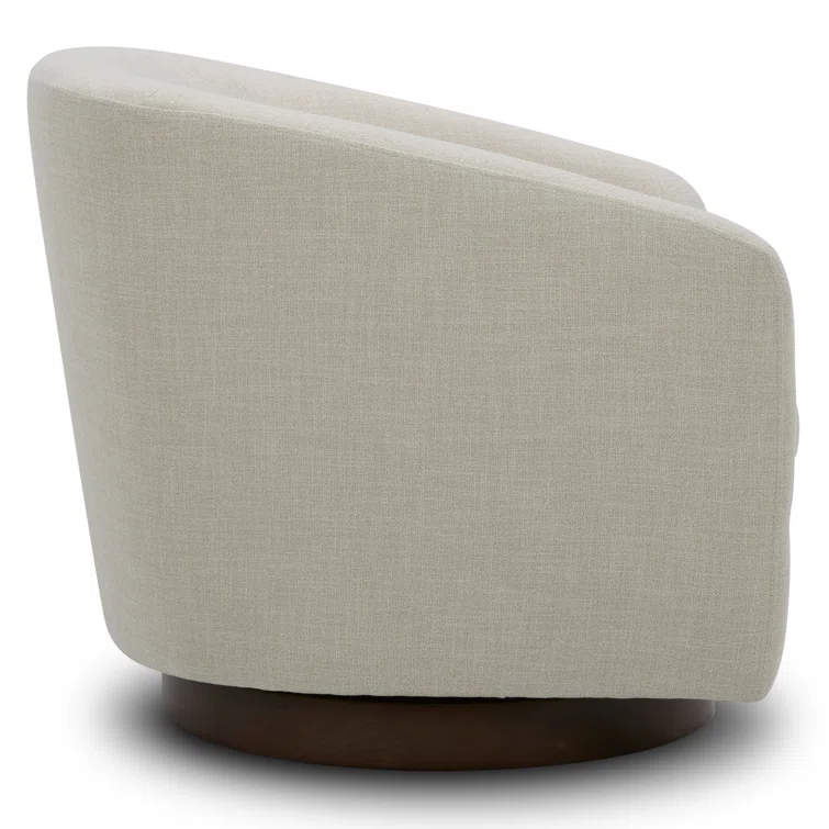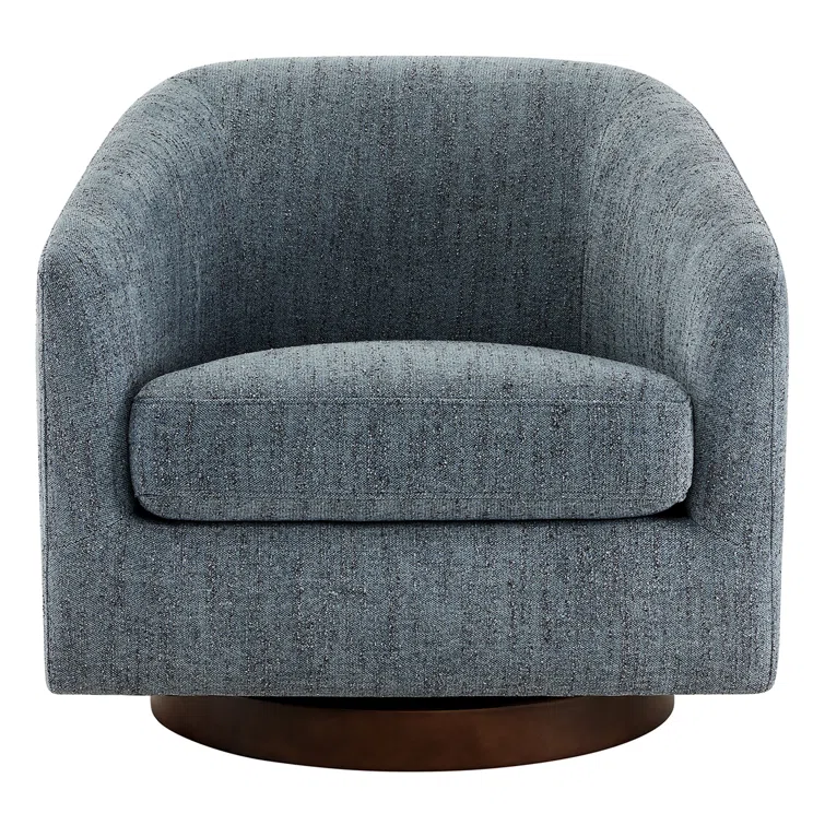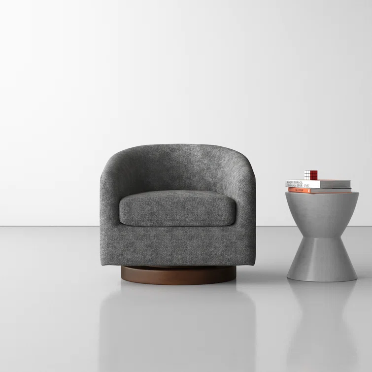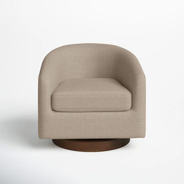 Modern momentum. This barrel chair pairs a curving silhouette with a convenient 360° swiveling function. Crafted from solid and engineered wood, its frame features a tight back that slopes into the arms for a contoured feel. We love that the web suspension is layered in high-density foam for comfort and support, all wrapped in tear-resistant upholstery available in a wide range of hues and fabrics. Bonus: The seat cushion has a removable cover with a zipper closure for easy cleaning. It has a weight capacity of 300 lbs.