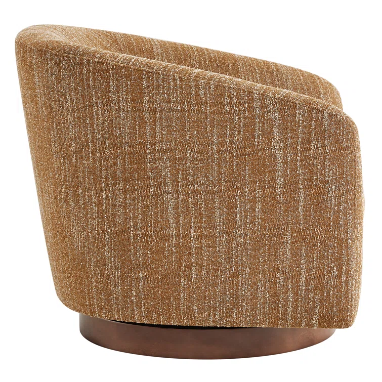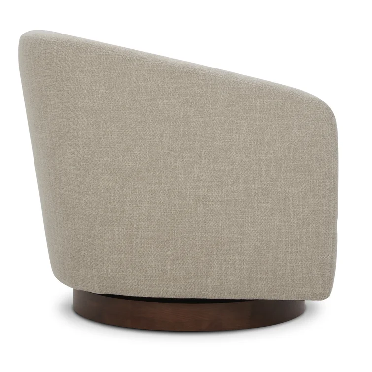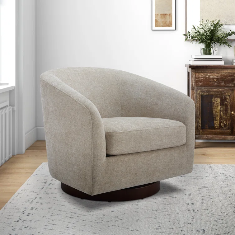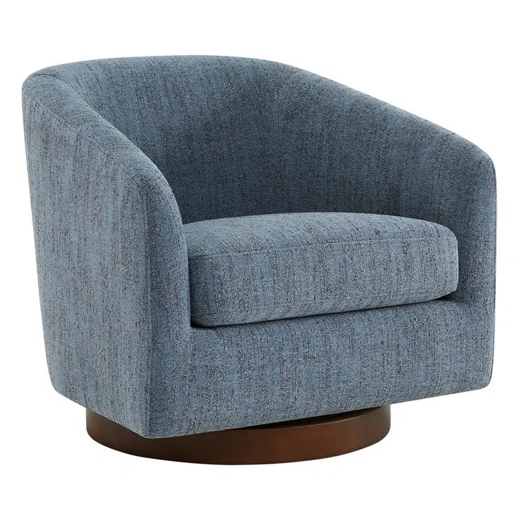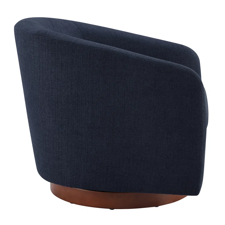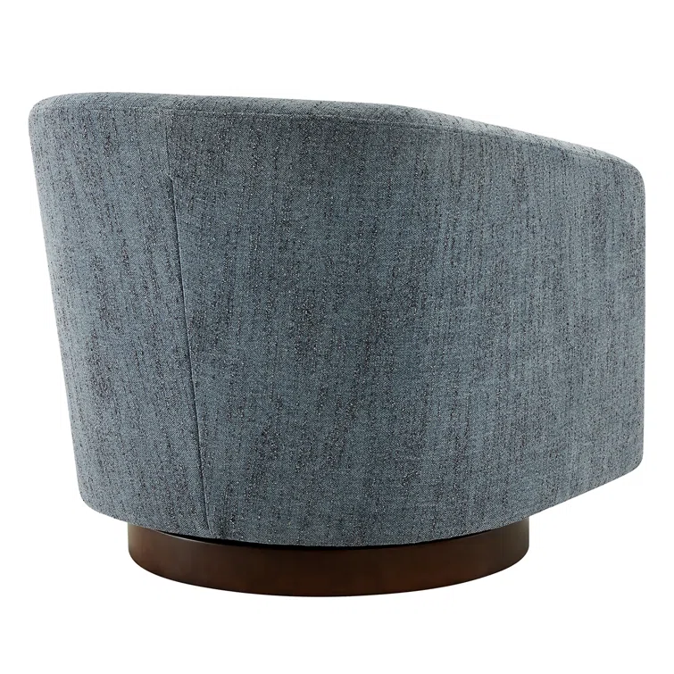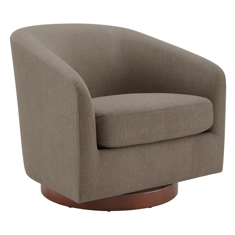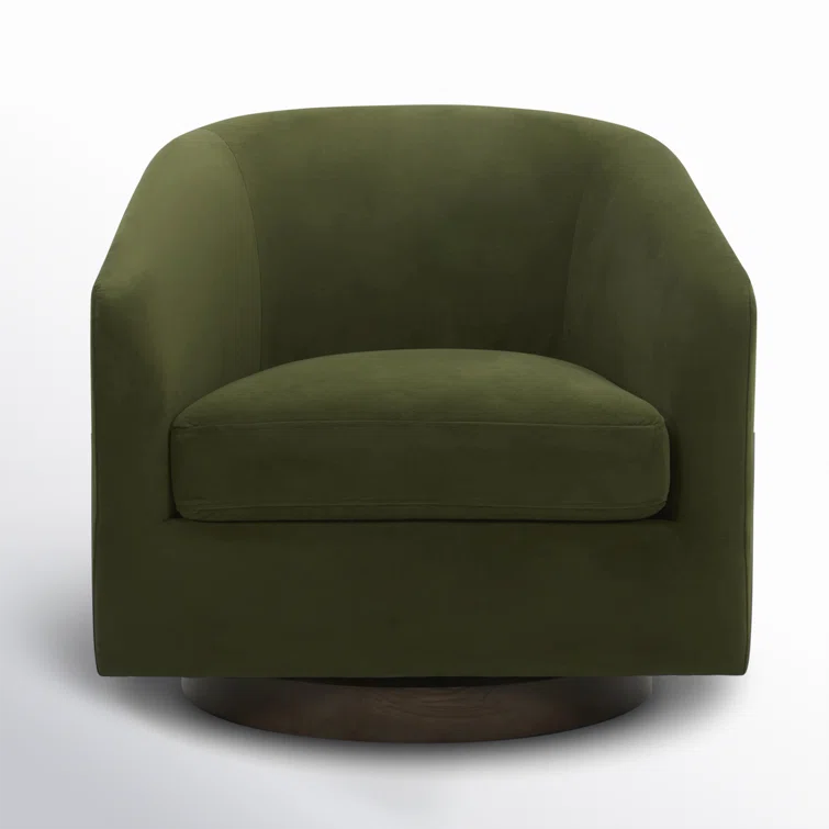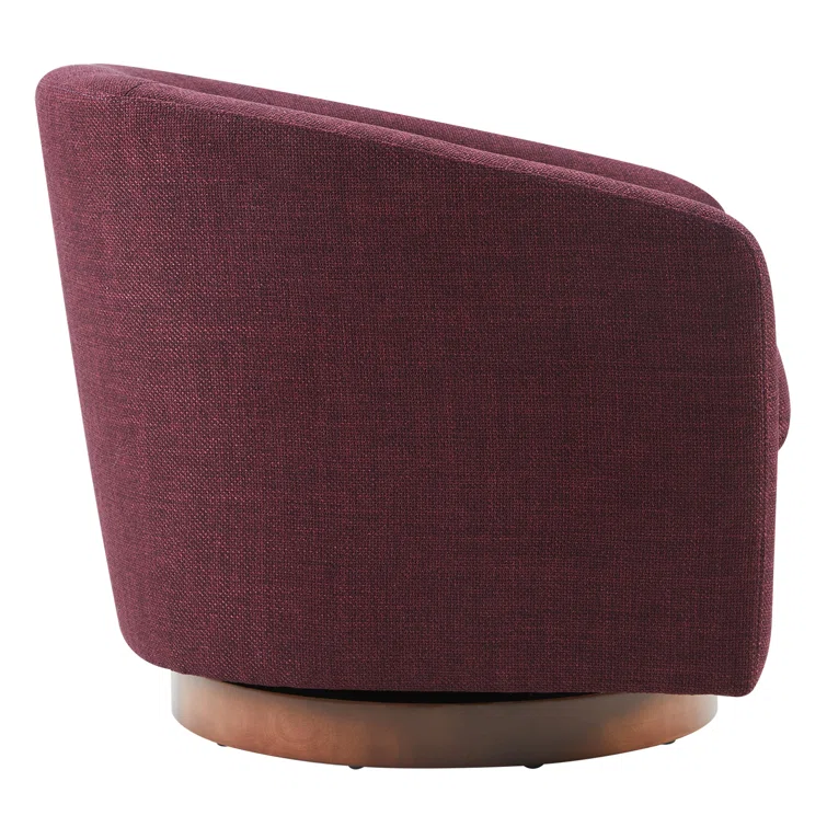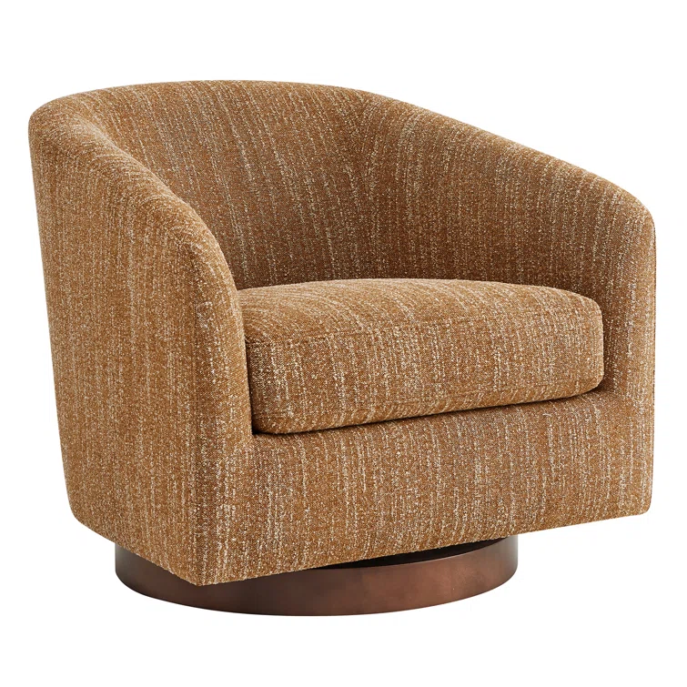 Modern momentum. This barrel chair pairs a curving silhouette with a convenient 360° swiveling function. Crafted from solid and engineered wood, its frame features a tight back that slopes into the arms for a contoured feel. We love that the web suspension is layered in high-density foam for comfort and support, all wrapped in tear-resistant upholstery available in a wide range of hues and fabrics. Bonus: The seat cushion has a removable cover with a zipper closure for easy cleaning. It has a weight capacity of 300 lbs.