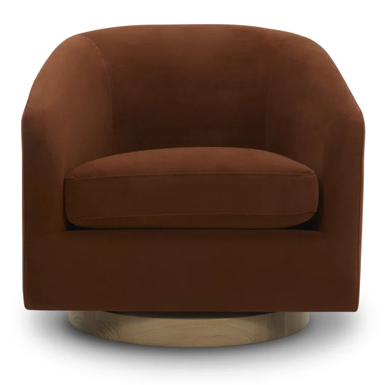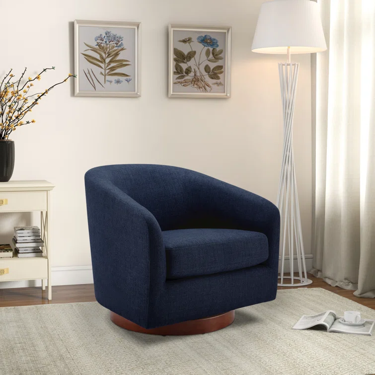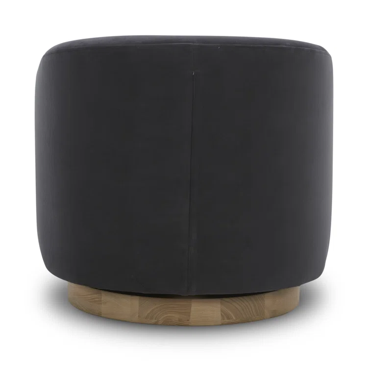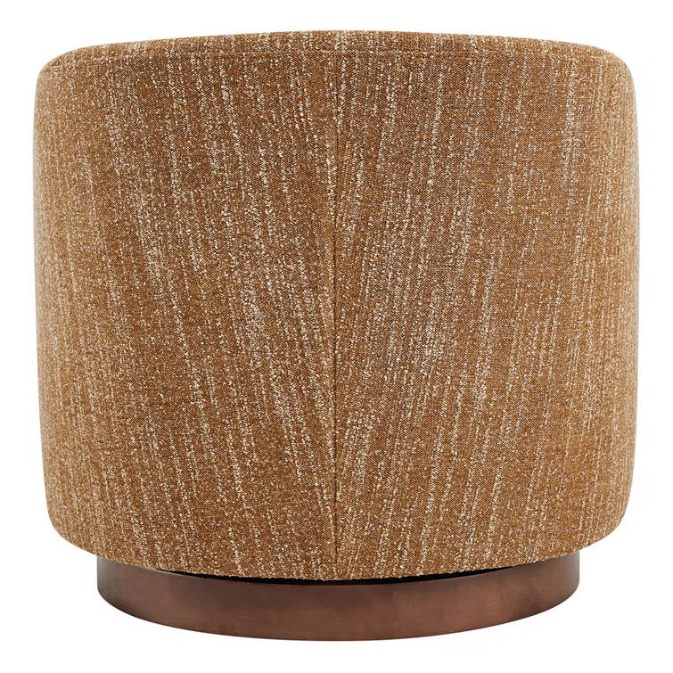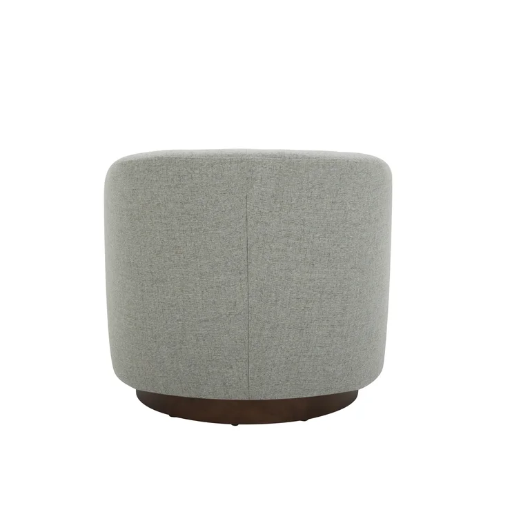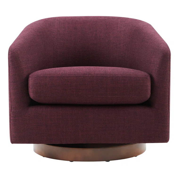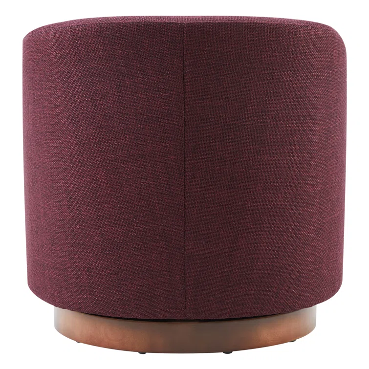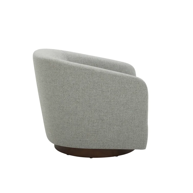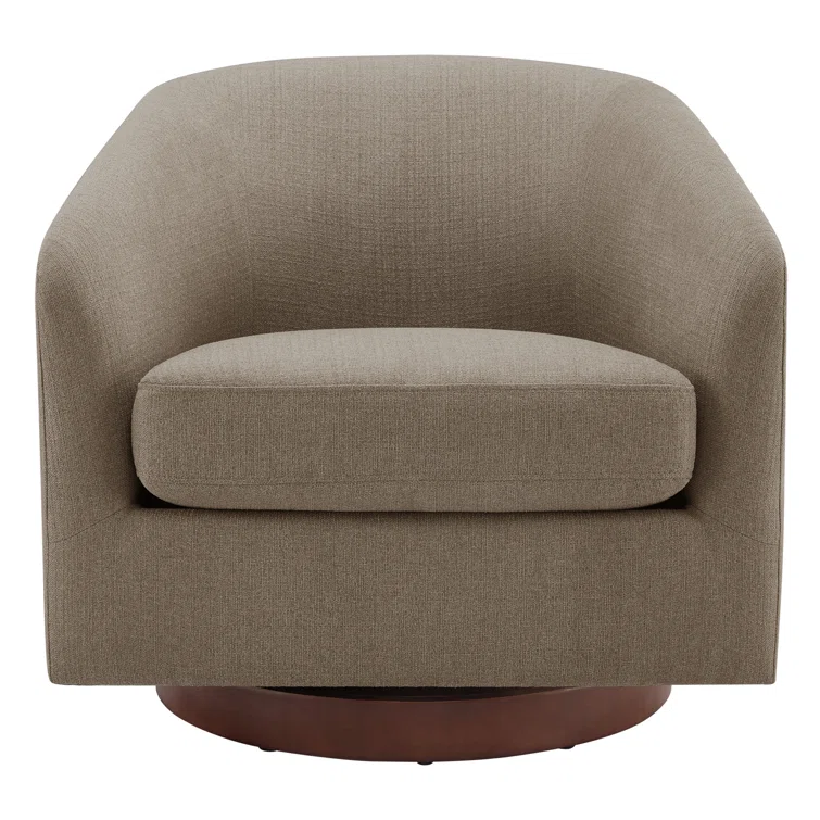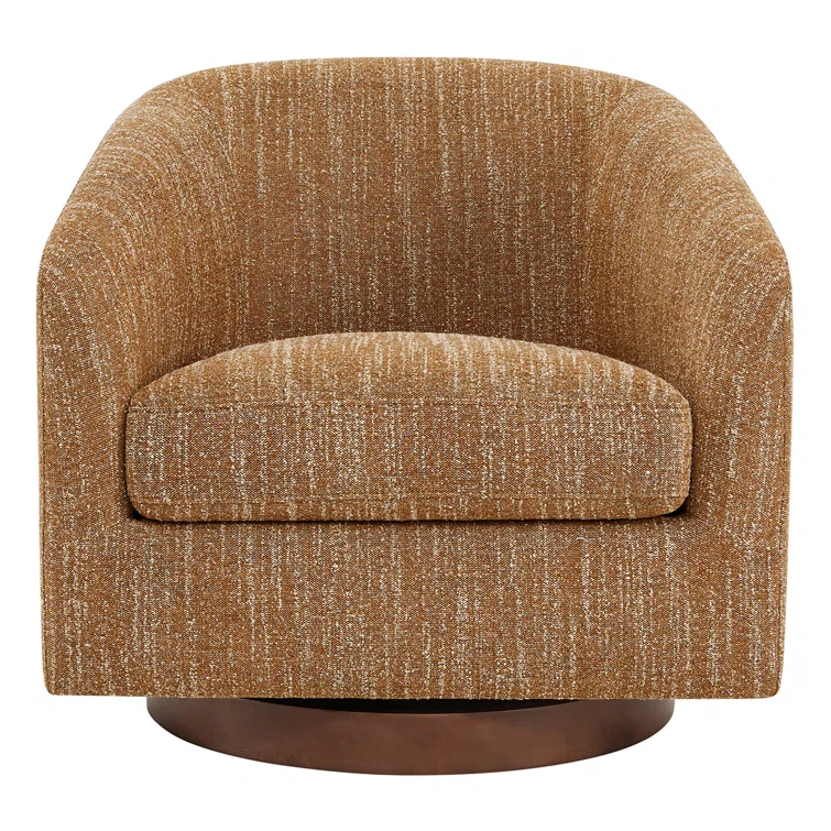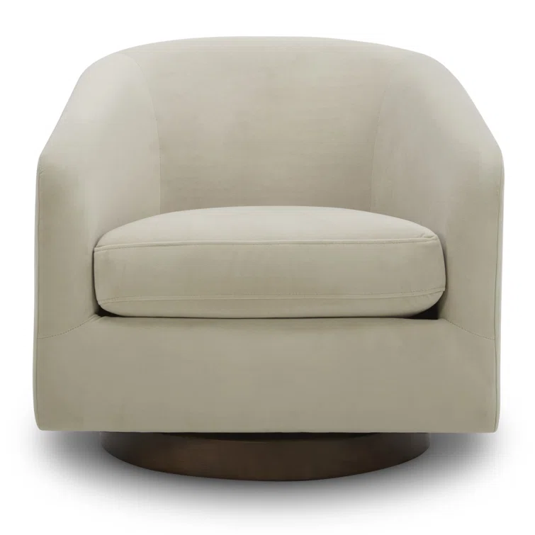 Modern momentum. This barrel chair pairs a curving silhouette with a convenient 360° swiveling function. Crafted from solid and engineered wood, its frame features a tight back that slopes into the arms for a contoured feel. We love that the web suspension is layered in high-density foam for comfort and support, all wrapped in tear-resistant upholstery available in a wide range of hues and fabrics. Bonus: The seat cushion has a removable cover with a zipper closure for easy cleaning. It has a weight capacity of 300 lbs.