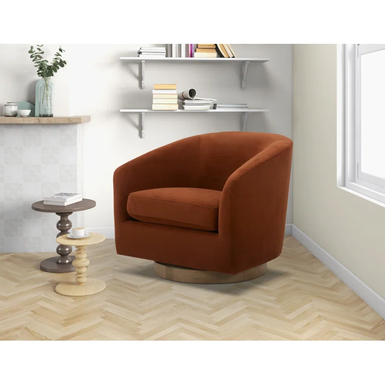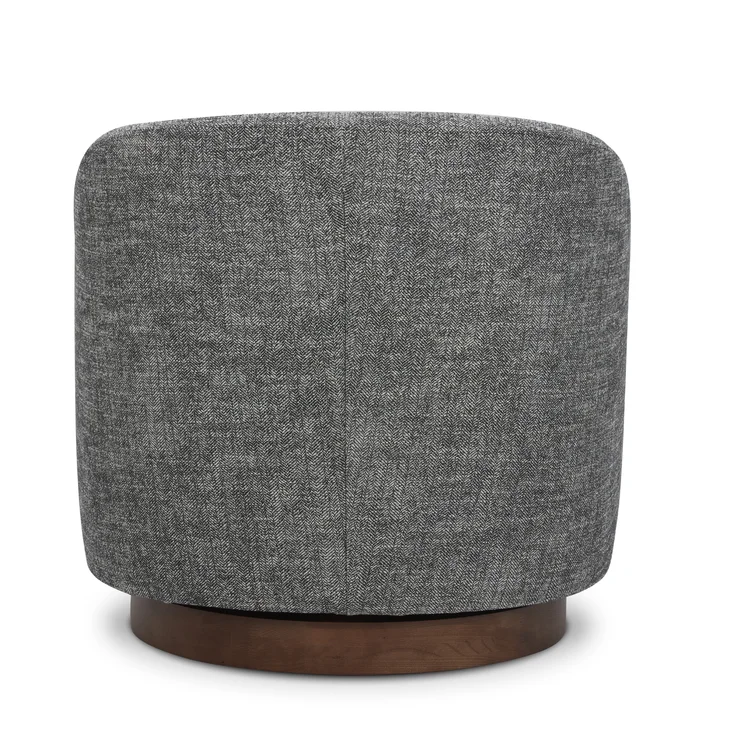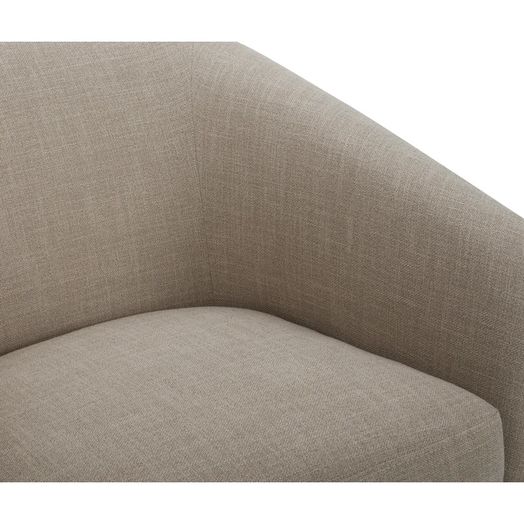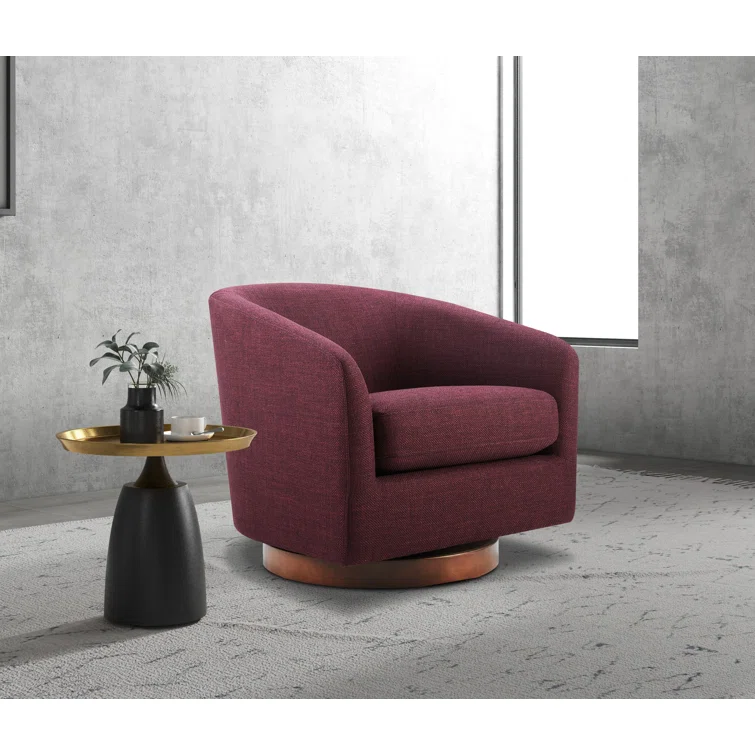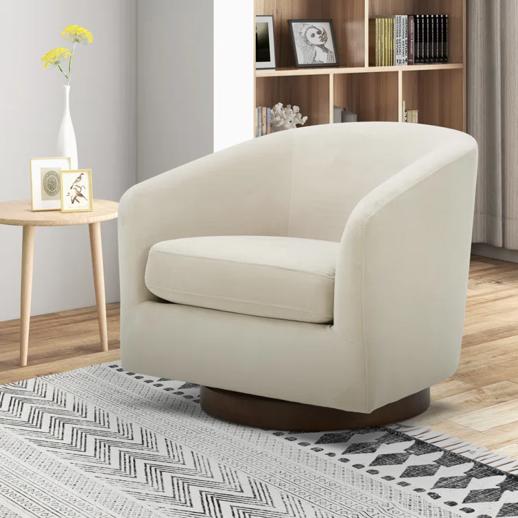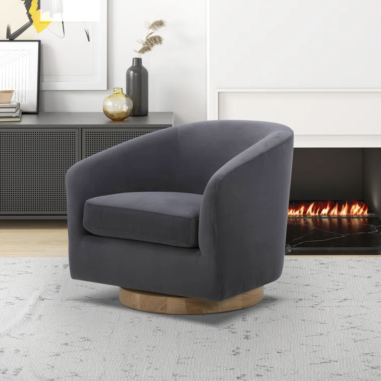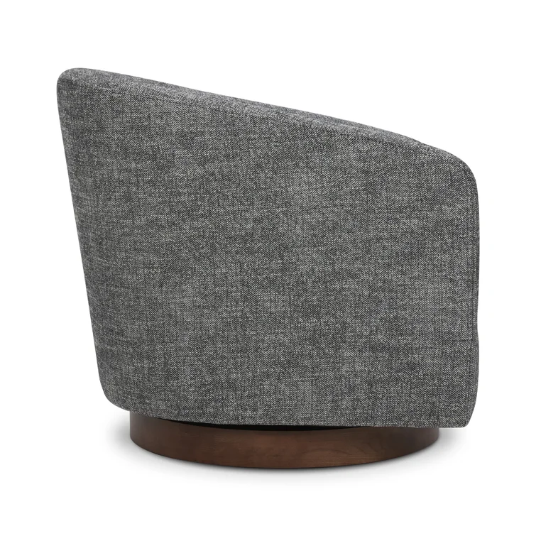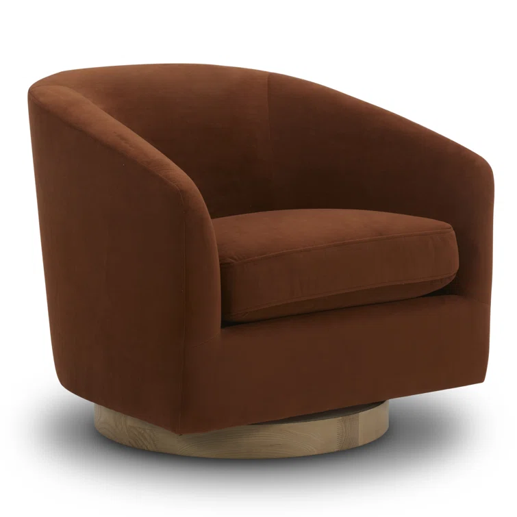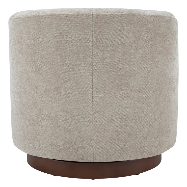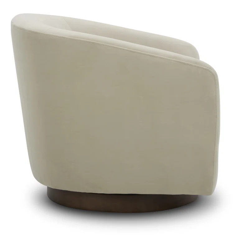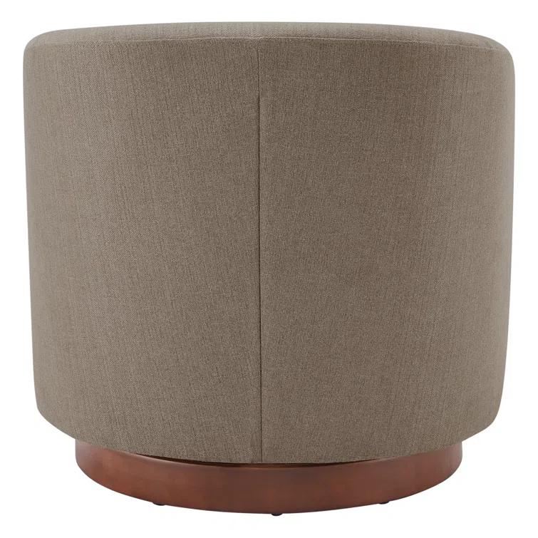 Modern momentum. This barrel chair pairs a curving silhouette with a convenient 360° swiveling function. Crafted from solid and engineered wood, its frame features a tight back that slopes into the arms for a contoured feel. We love that the web suspension is layered in high-density foam for comfort and support, all wrapped in tear-resistant upholstery available in a wide range of hues and fabrics. Bonus: The seat cushion has a removable cover with a zipper closure for easy cleaning. It has a weight capacity of 300 lbs.