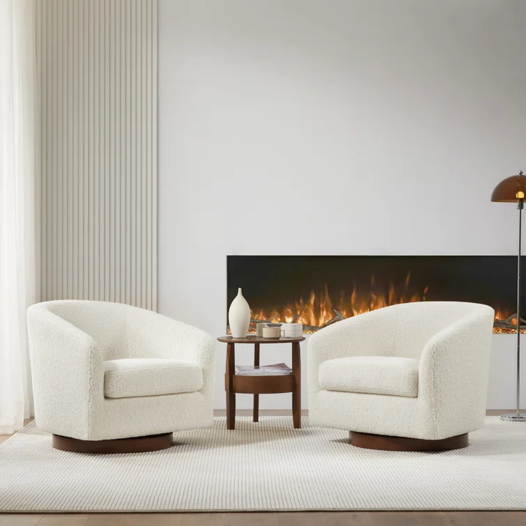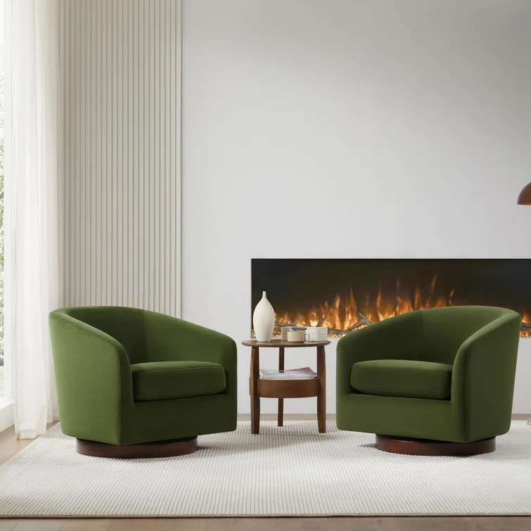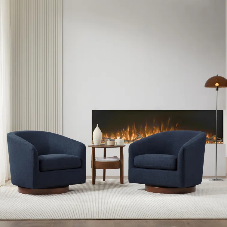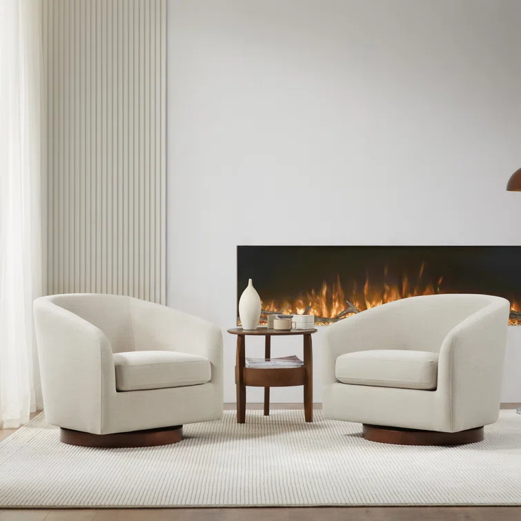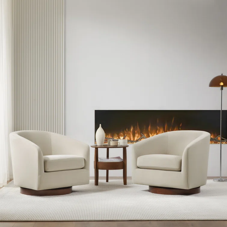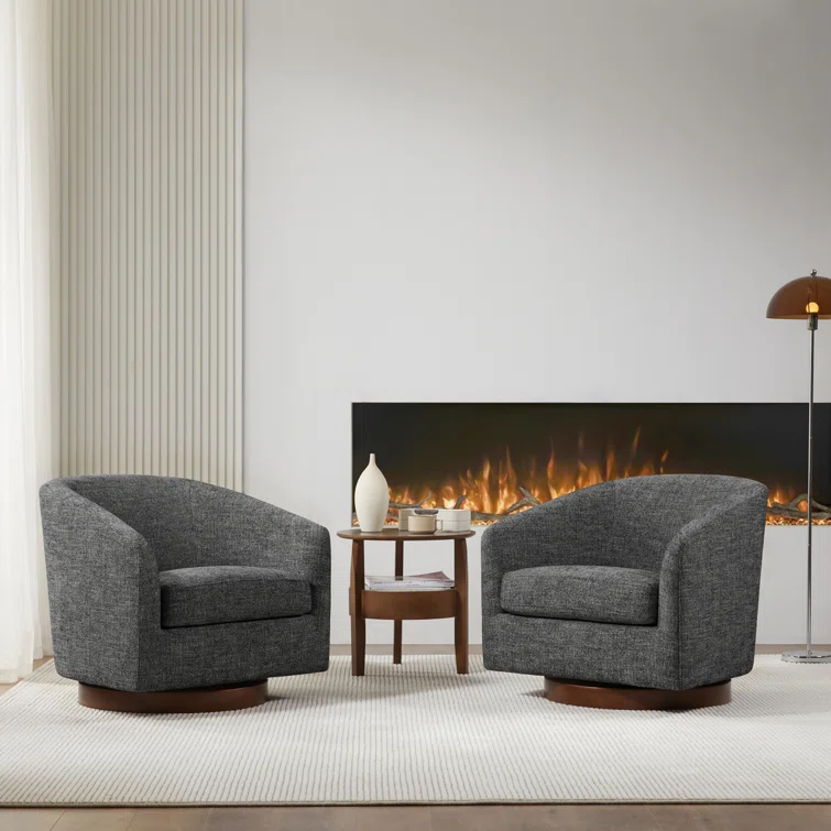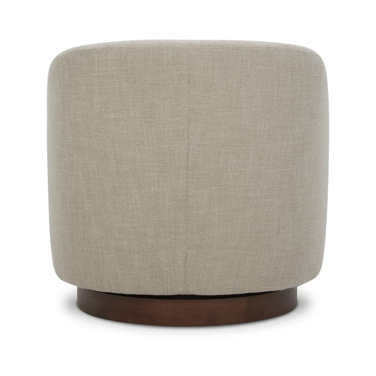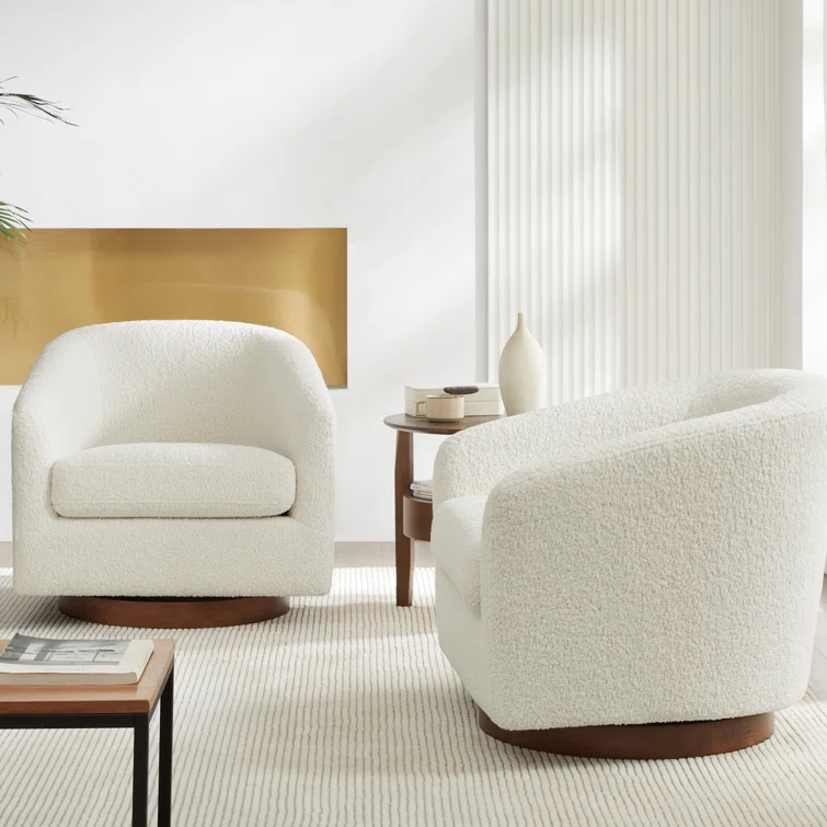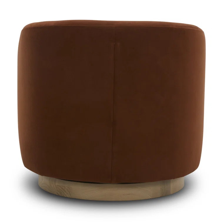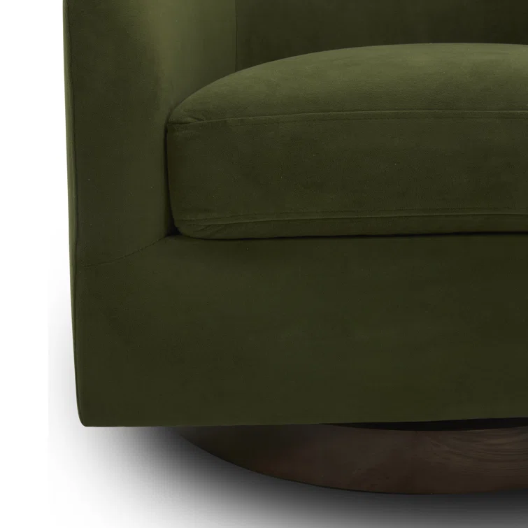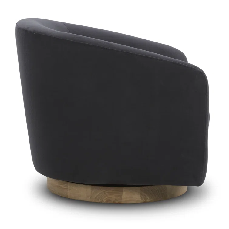 Modern momentum. This barrel chair pairs a curving silhouette with a convenient 360° swiveling function. Crafted from solid and engineered wood, its frame features a tight back that slopes into the arms for a contoured feel. We love that the web suspension is layered in high-density foam for comfort and support, all wrapped in tear-resistant upholstery available in a wide range of hues and fabrics. Bonus: The seat cushion has a removable cover with a zipper closure for easy cleaning. It has a weight capacity of 300 lbs.