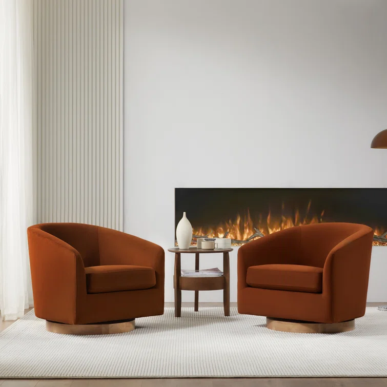 - This armchair's tailored profile and elegant barrel back design bring visual appeal and contemporary style to a living room, lounge room, office, or another seating area
