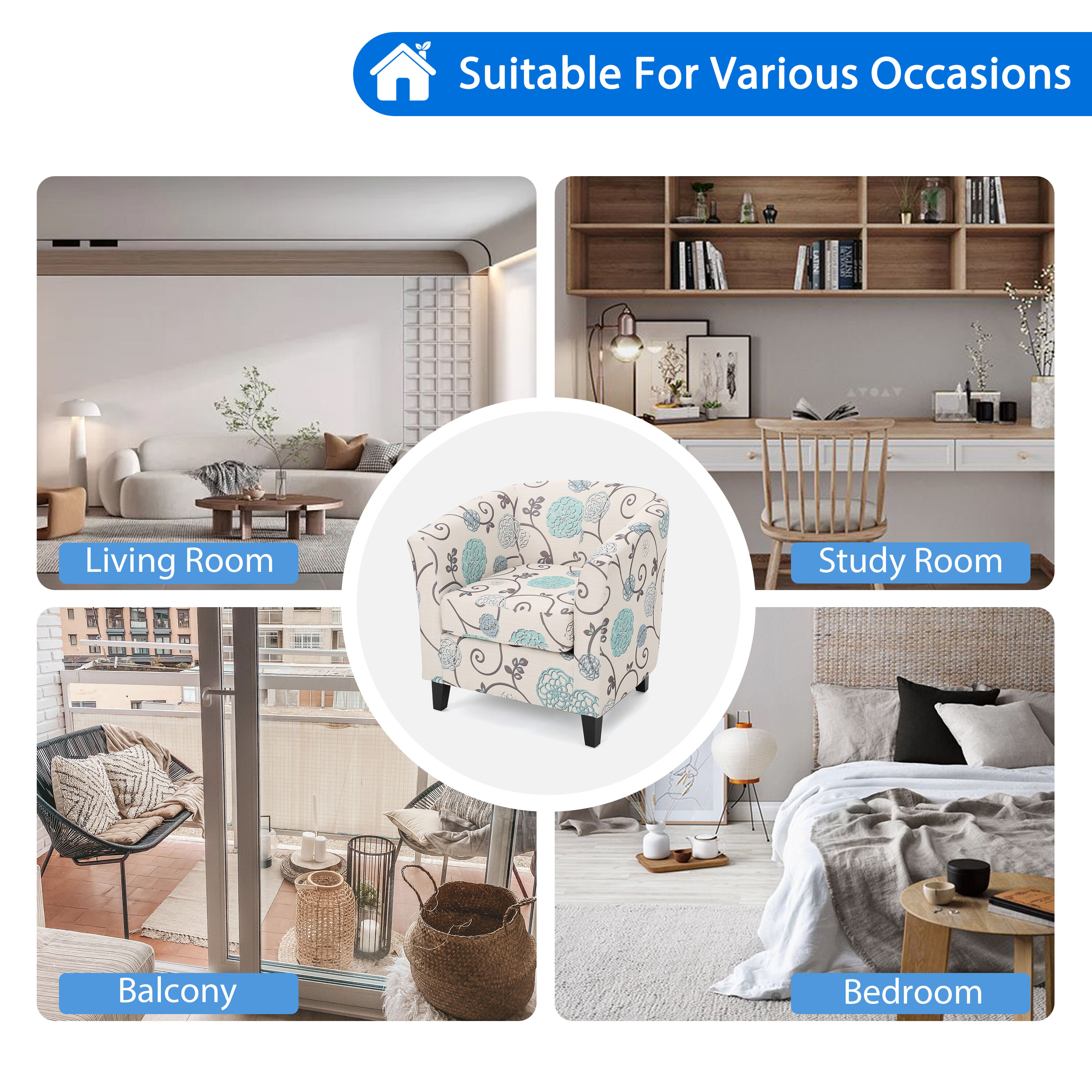 Transform any room to a stylish space with comfortable seating with this club chair. Not only does it give your guests a comfortable place to relax and converse, but it is simple enough to allow this chair to be either a staple or an accent piece. This chair is a great addition for any room. With the bright, soul soothing pattern of this chair, it is sure to lift anyone's spirit. Place it near a window and you will feel as if you are sitting outside on a grassy hill with the breeze flowing through your hair. Have the freedom to design your room without being hided by your furniture. This piece provides the perfect way to unwind after a long week.
