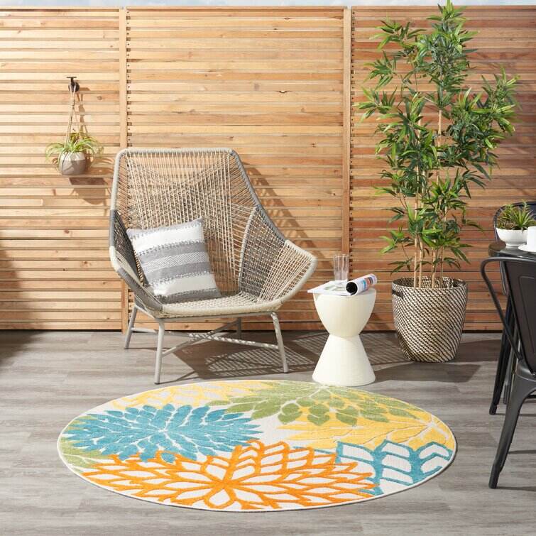 - A floral outdoor rug brings a cool tropical vibe to your home.