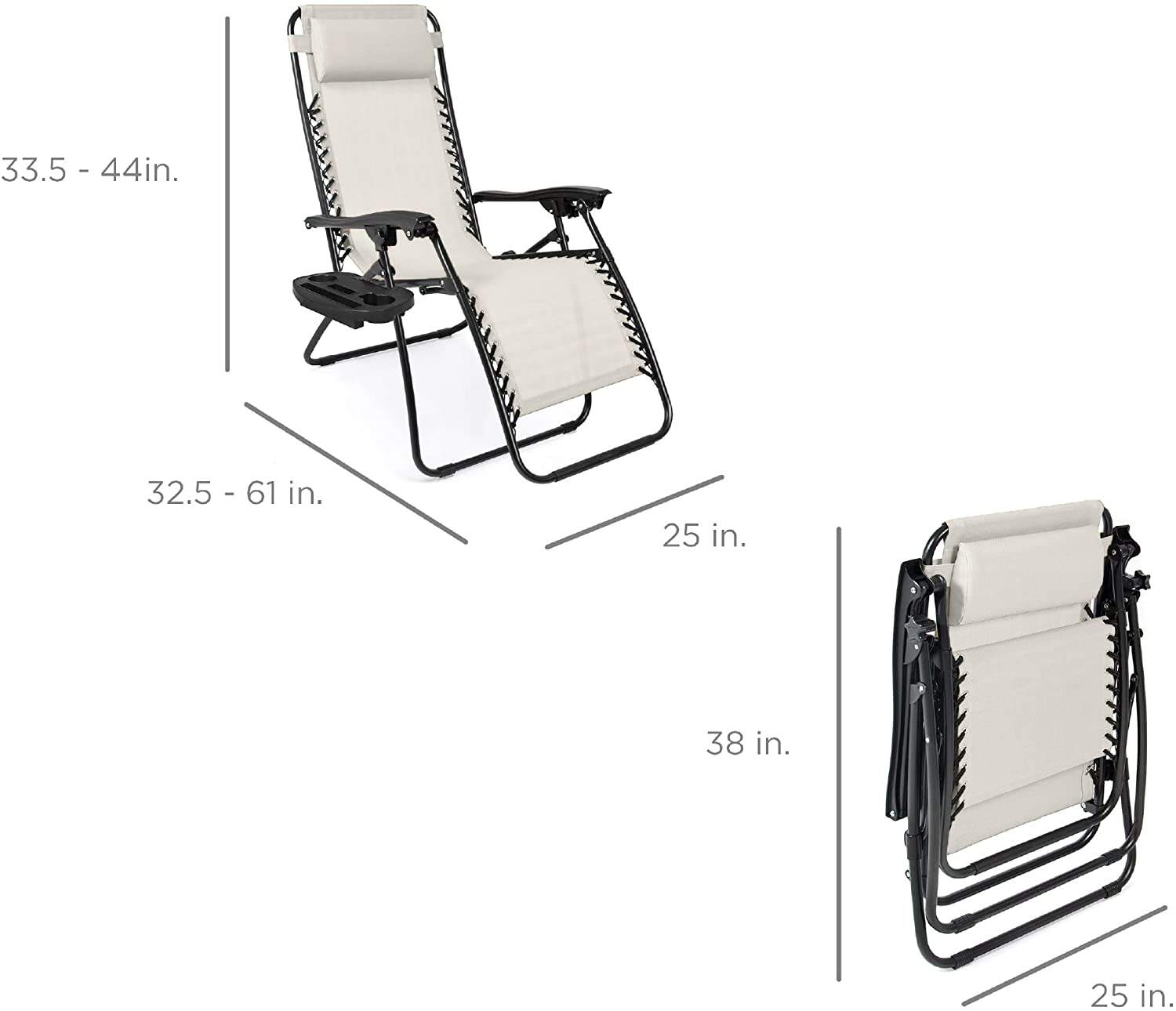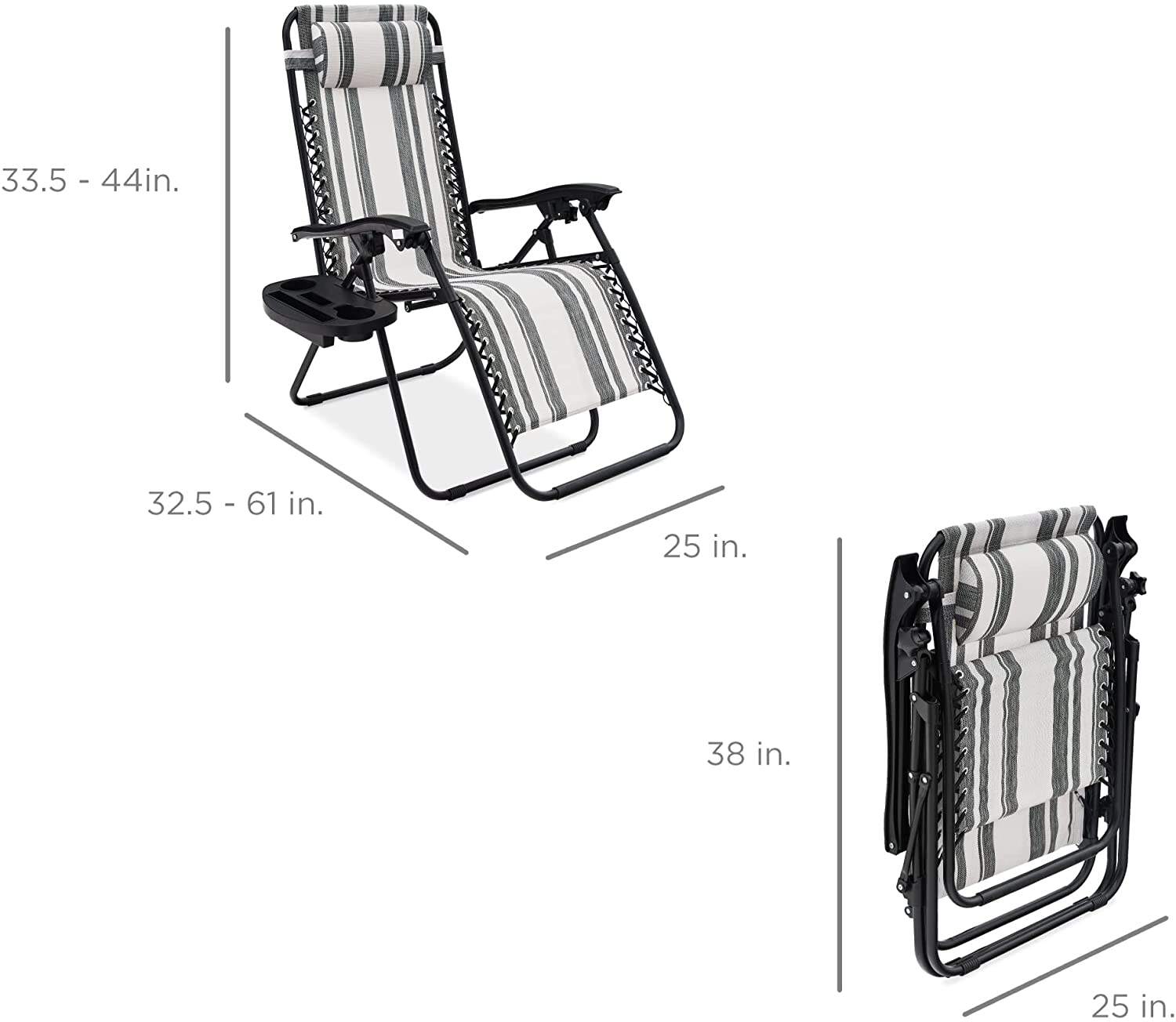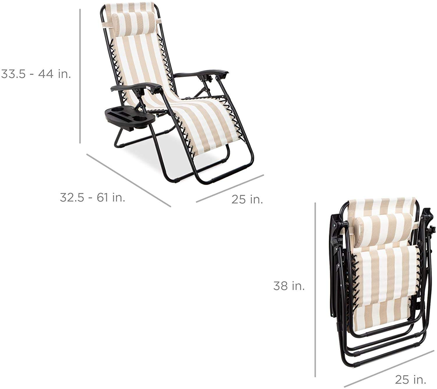 - REMOVABLE. ADJUSTABLE HEADRESTS: Includes a removable. padded headrest for an extra element of adjustable comfort; OPEN DIMENSIONS: 32.5"-61"(L) x 25"(W) x 33.5"-44"(H); FOLDED DIMENSIONS: 38"(L) x 25"(W) x 6"(H)
