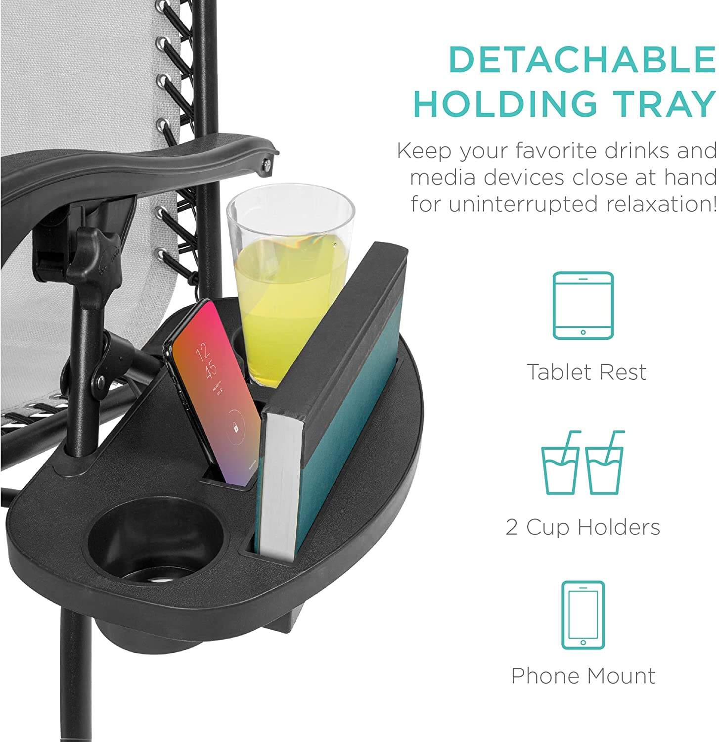 - CONVENIENT & DETACHABLE TRAY: Removable tray is built with two cup holders. a phone holder. and a tablet holder so you never have to be far from your favorite drinks or media devices!