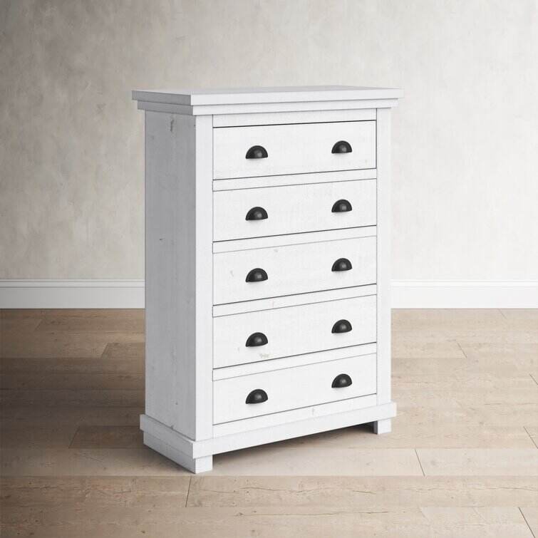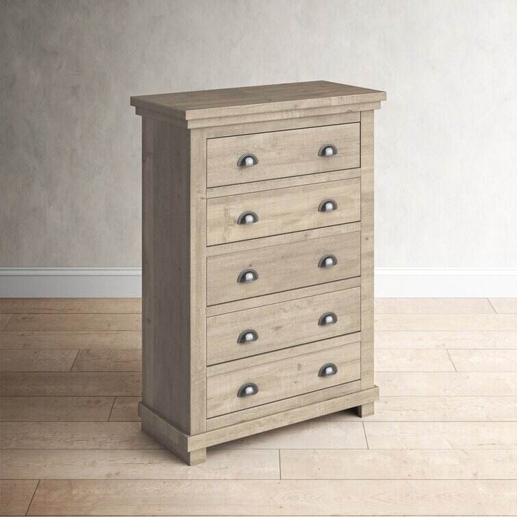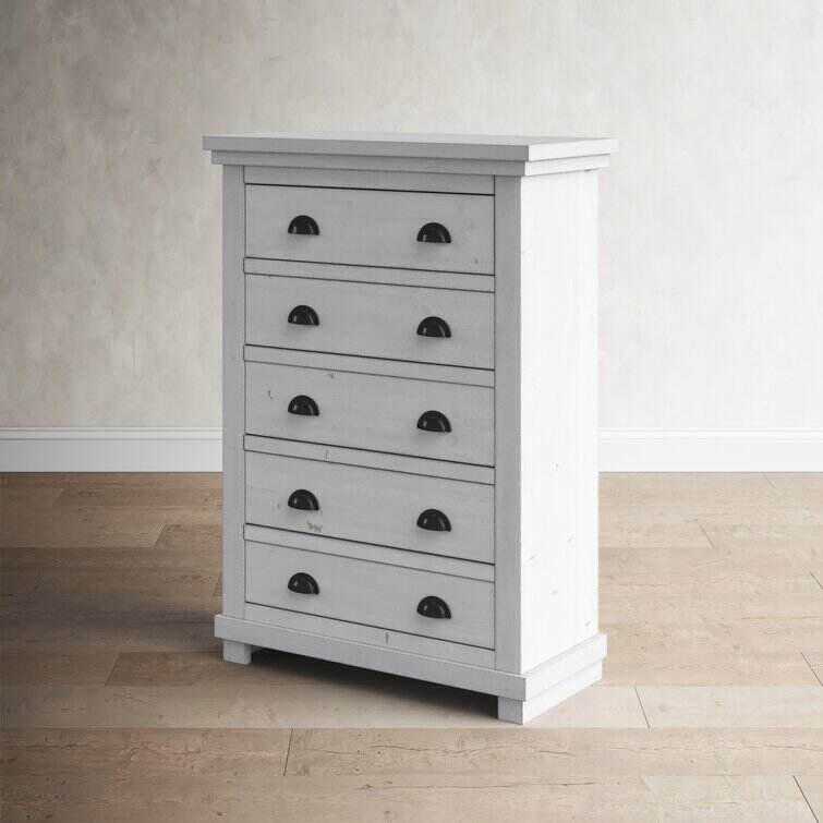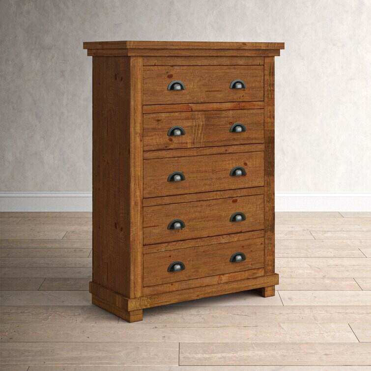 Crafted from salvaged pine wood, this clean-lined five-drawer chest brings storage and a touch of well-worn charm to your master suite or guest room. Its five drawers provide plenty of space for your wardrobe or spare linens, while a distressed finish and tasteful cup pull ensure this design is just as stylish as it is practical. This piece arrives fully assembled with a tip-over restraint strap included, giving you an option for added stability.