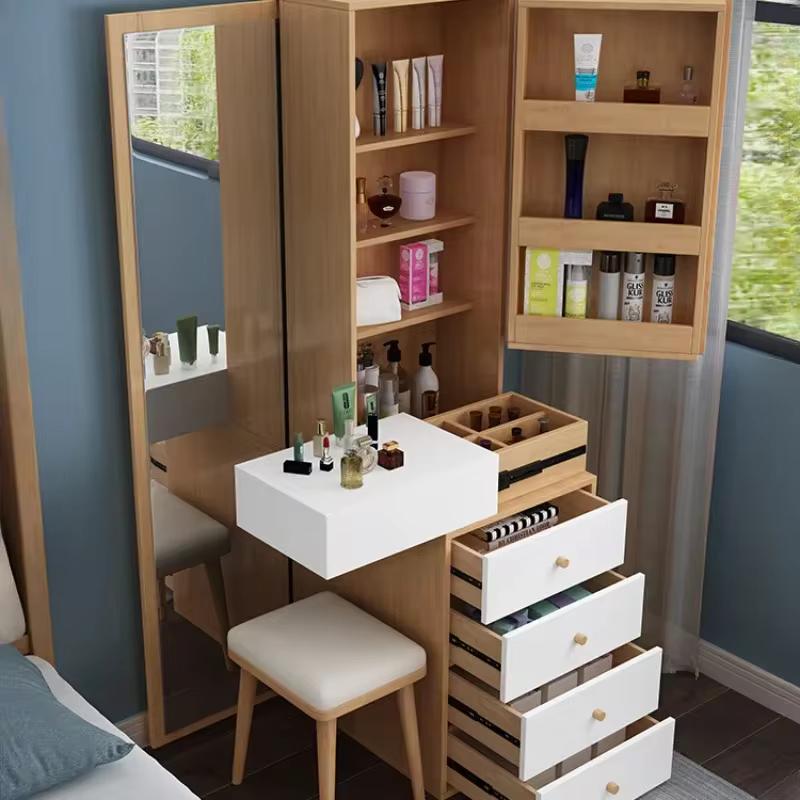 Solid wood dressing table storage cabinet integrated full-length mirror dressing table bedroom online celebrity multifunctional