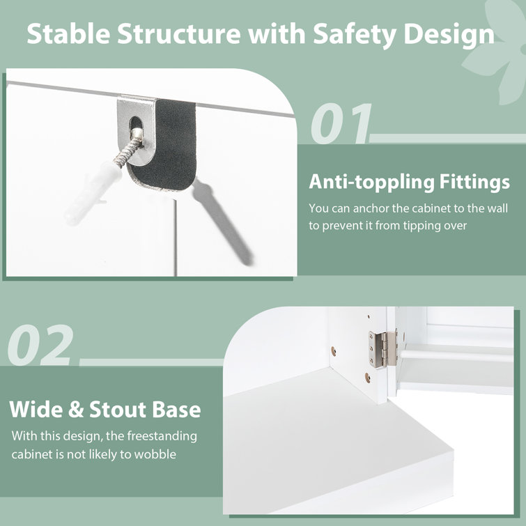 • The wide base and anti-toppling device ensure safe use. It comes with detailed instructions for easy assembly.