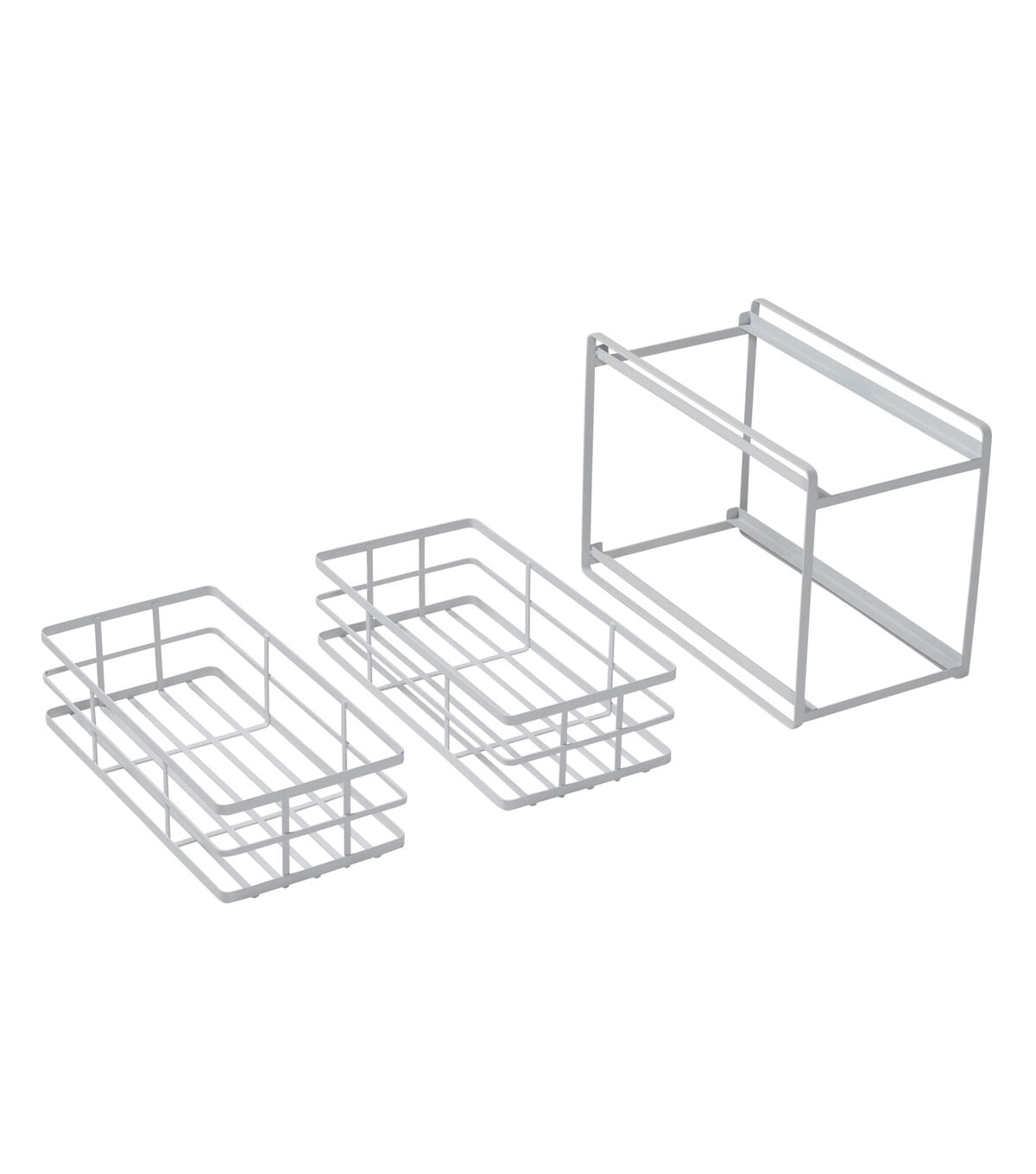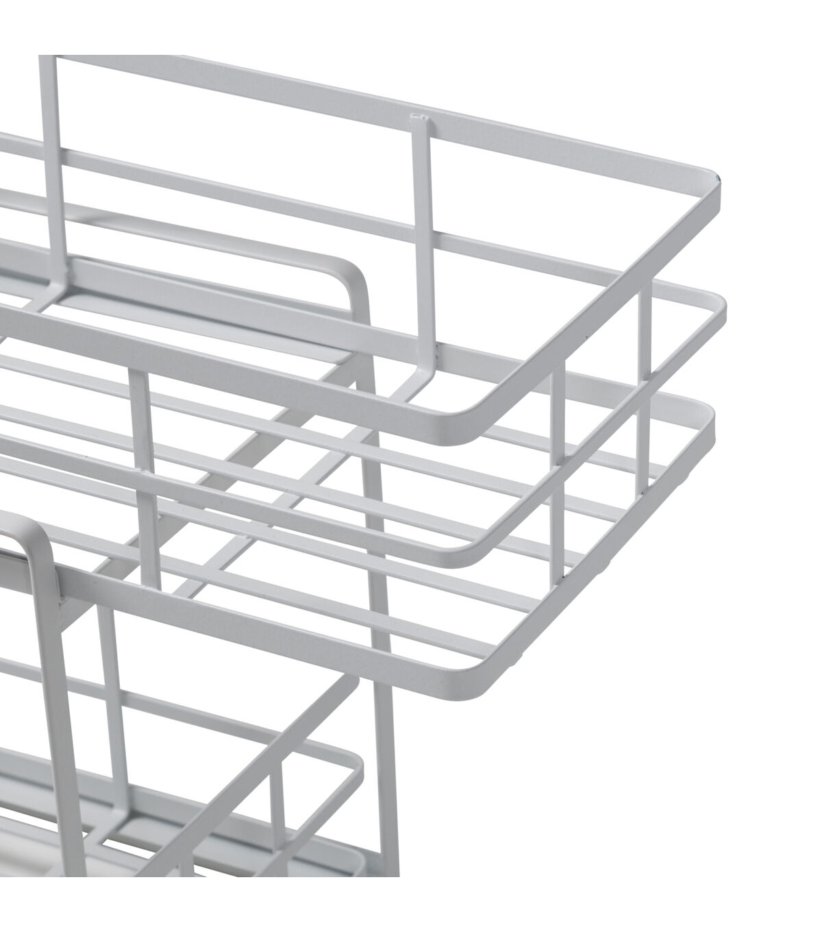- A stopper on each basket helps prevent it from crashing down