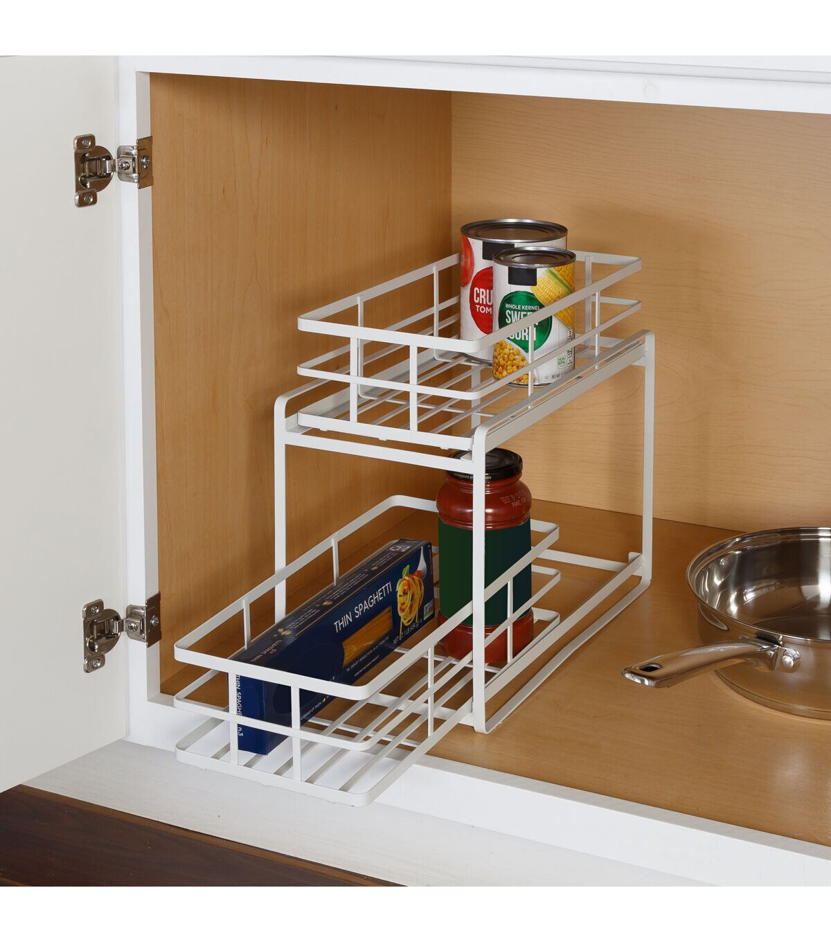 - 2-tier sliding basket organizer for countertop, cabinet, or under the sink
