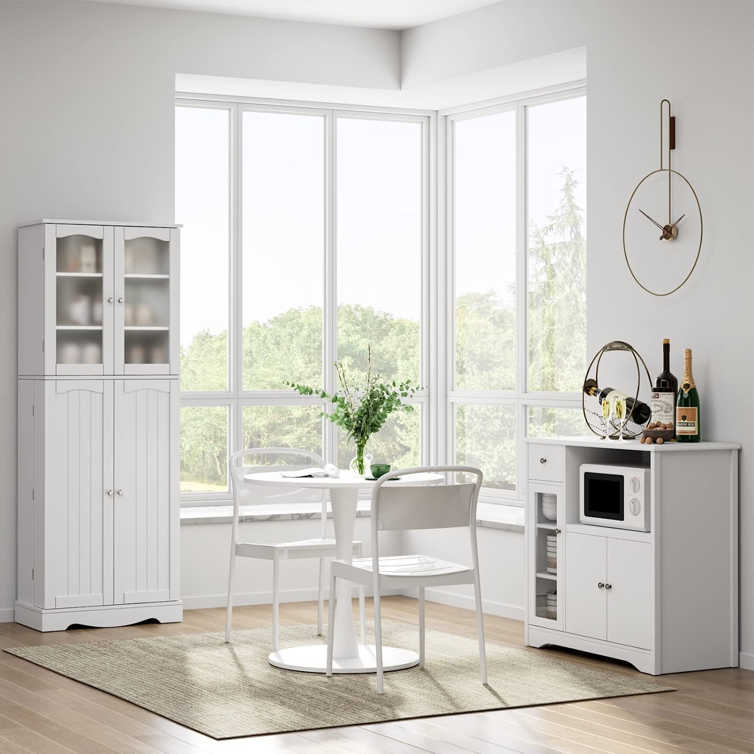 - 【Style Meets Function】Featuring arched lines and a modern white tone, the elegant design makes this storage cabinet stand out in any room. Suitable for most renovations and adds practical functionality in the dining room, kitchen, living room, entryway, and bedroom