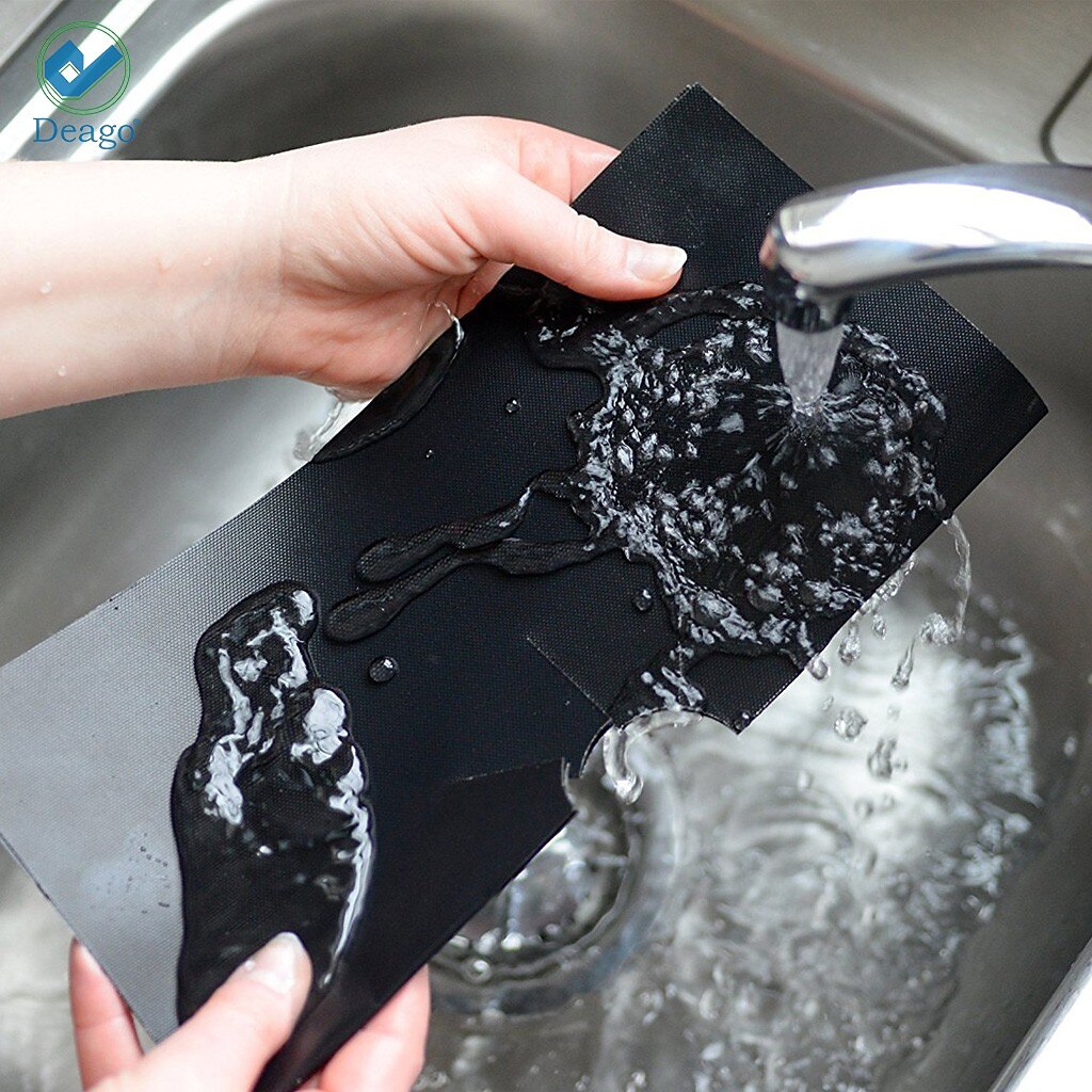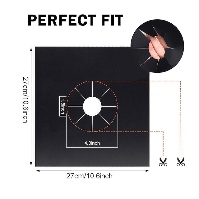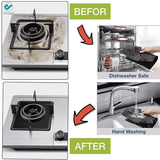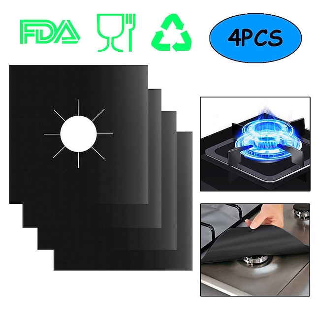 4pcs Reusable Gas Range Protector Gas Stove Burner Safe Non-Sticky and Easy to Clean Teflon Glass Fiber Black Protective Pad for Cleaning Kitchen Tools