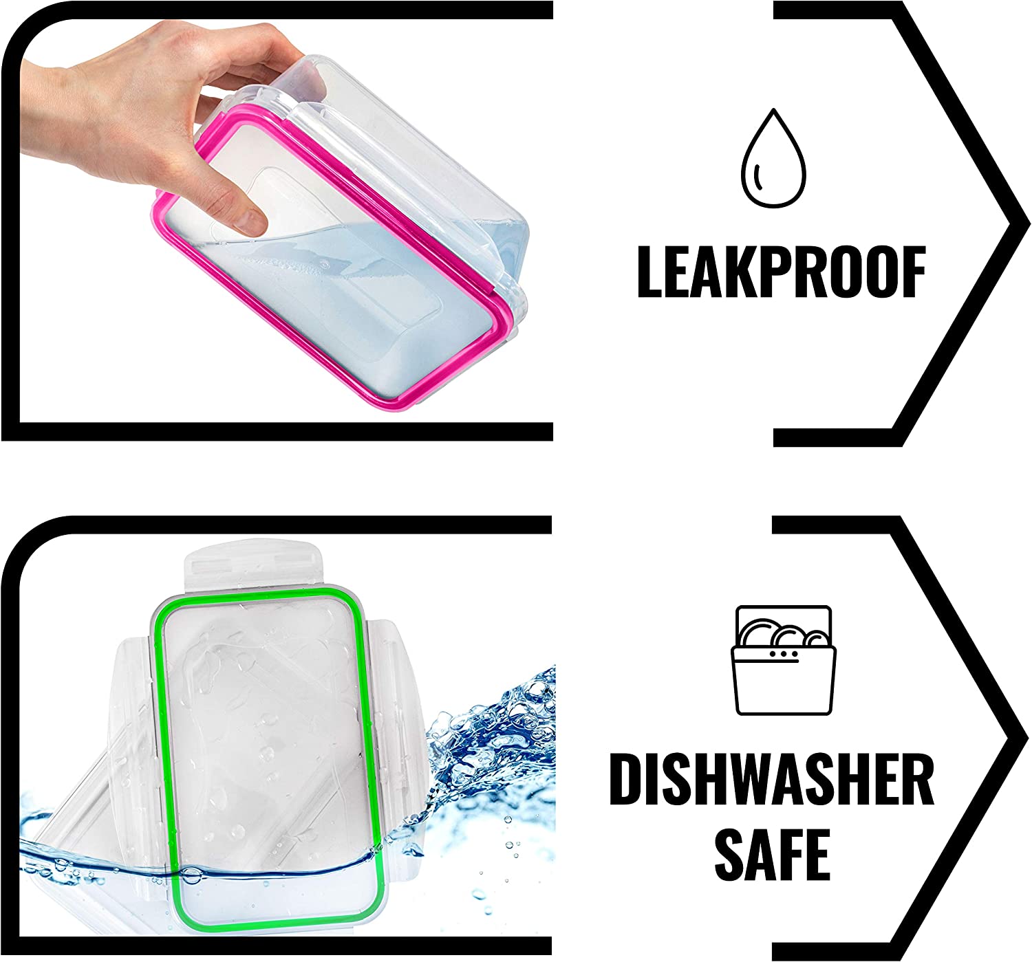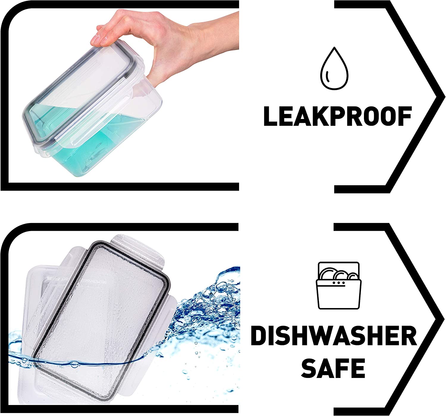 • No more spills - Leakproof 4-hinge locking system forms an airtight, watertight seal between container and lid. You can carry soups and sauces in your bag without worrying about spills.