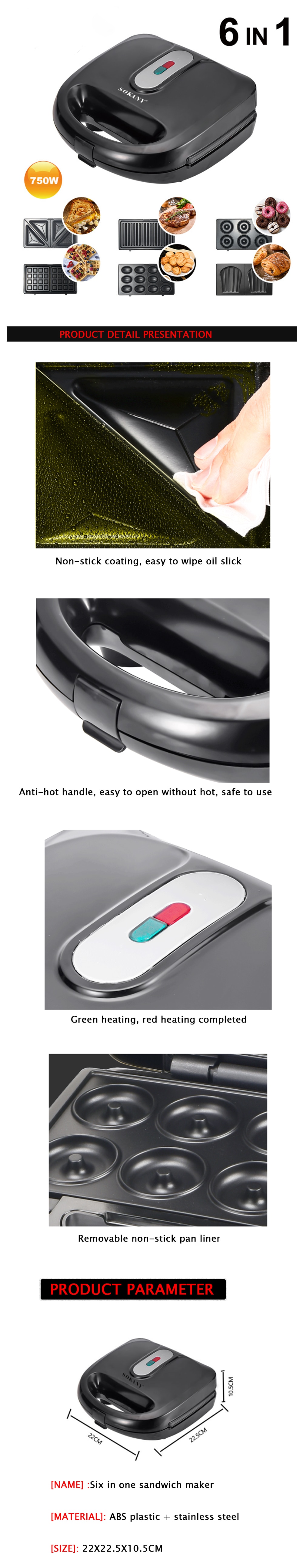 6-in-1 sandwich maker. we offer you 6 different detachable cooking plates for you to grill various delicious food.