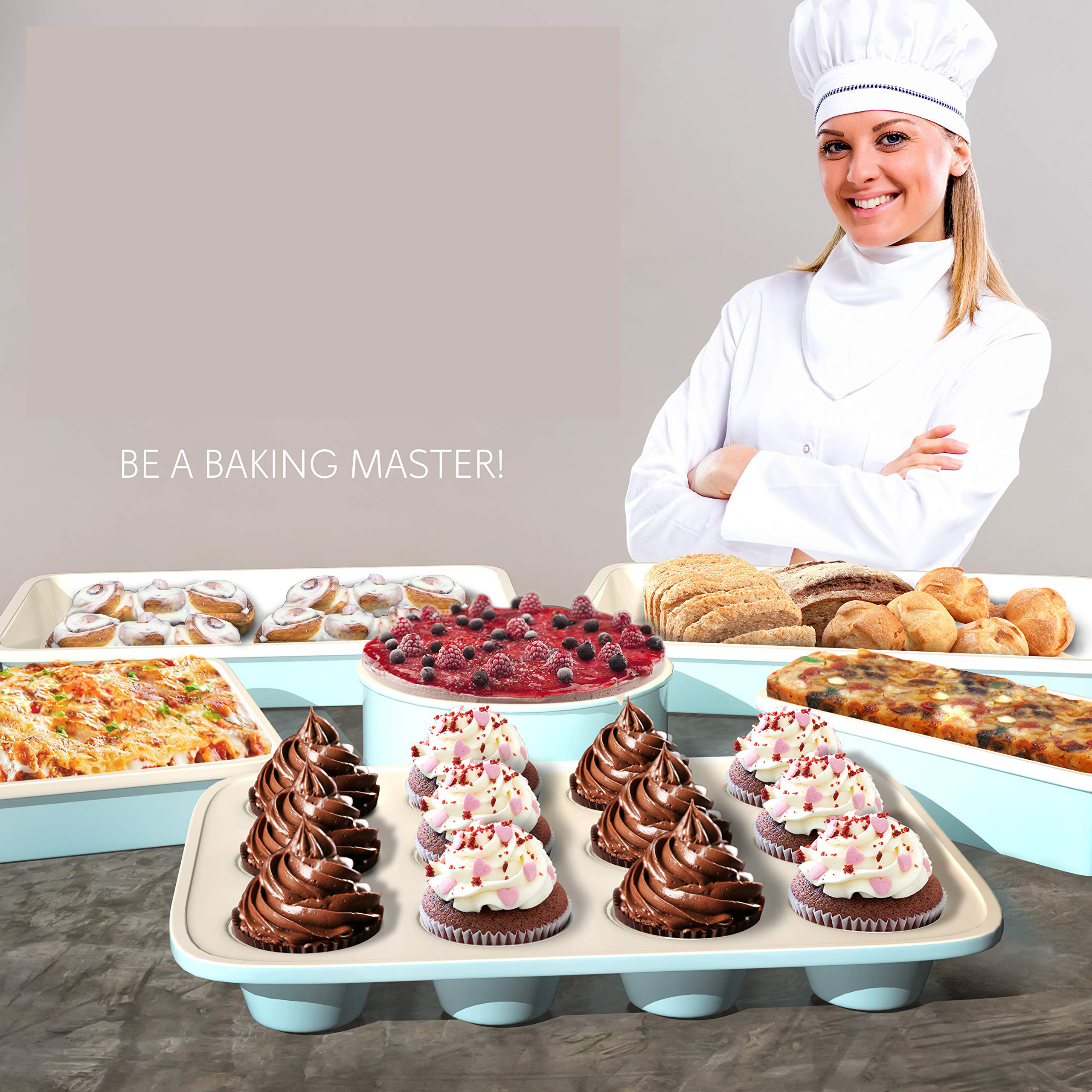 - NON-STICK CERAMIC COATING: This attractive green pan & white inside non-stick ceramic coating, bakeware set safe & non-toxic materials to ensure food safety for you & your family.