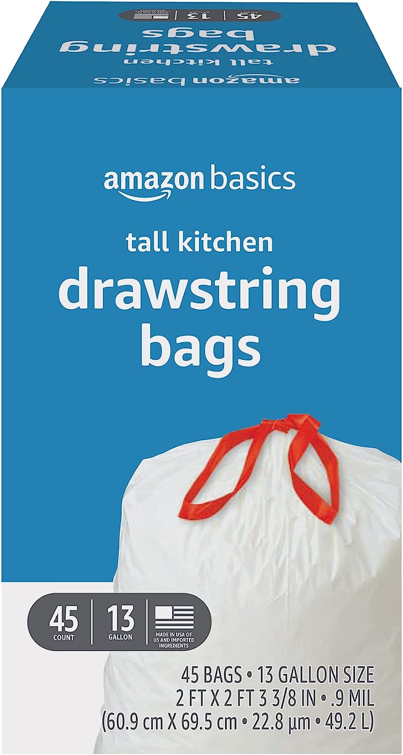 • Basics Tall Kitchen Drawstring Trash Bags, 13 Gallon, Unscented, 120 Count (Previously Solimo)