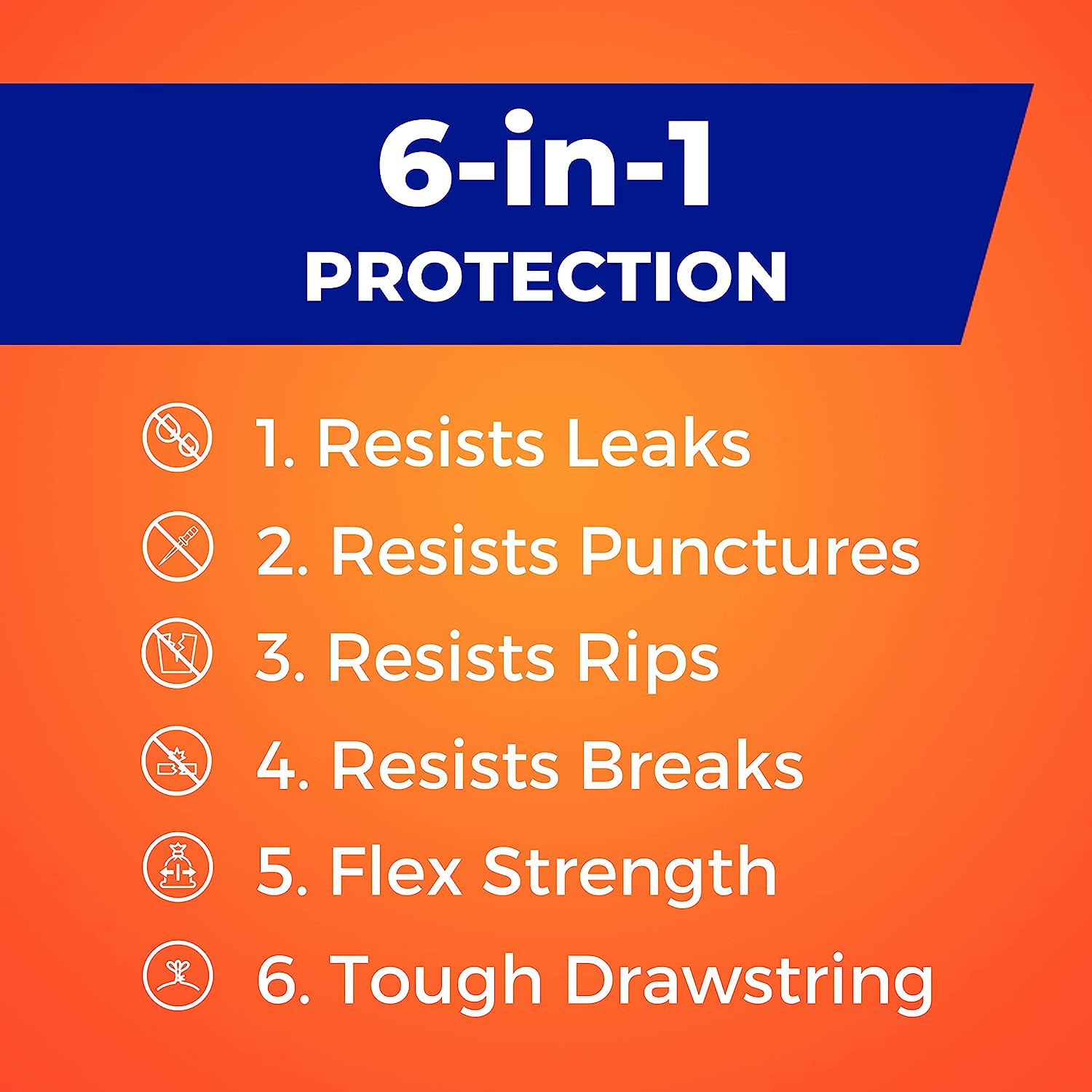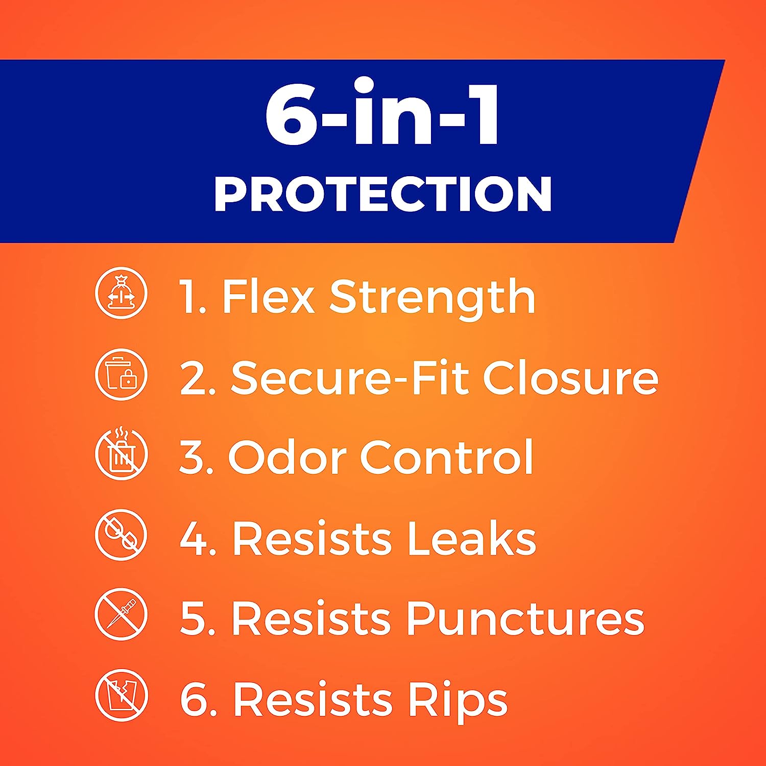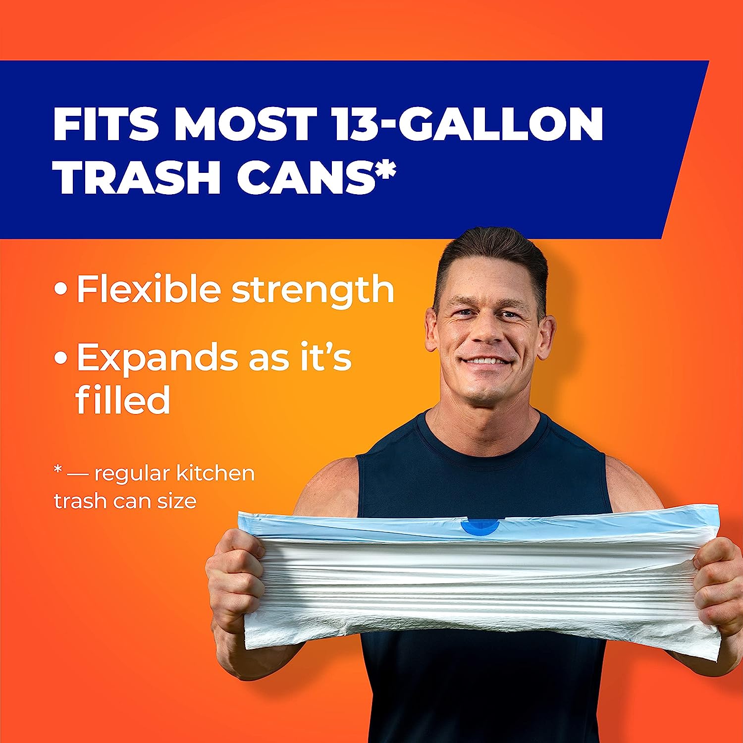 TRIPLE-ACTION TECHNOLOGY—These kitchen garbage bags, stretch and expand to accommodate oversized loads without punctures, leaks or tears