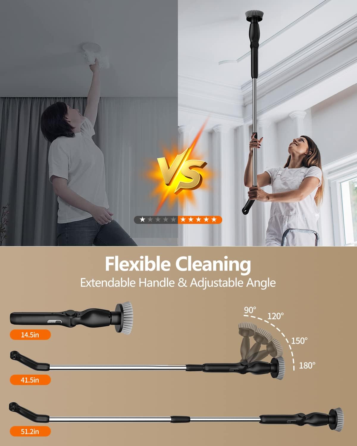 • 【12-54in Detachable & Adjustable Mop】Leebein shower scrubber helps you get rid of laborious household cleaning, put the telescopic extension rod on and it will allow you to adjust the length of the spin scrubber from 12 inches up to 54 inches, which can help you clean the hard-to-reach places without bending and kneeling. Saving your back and knees by saying goodbye to the traditional clean way.
