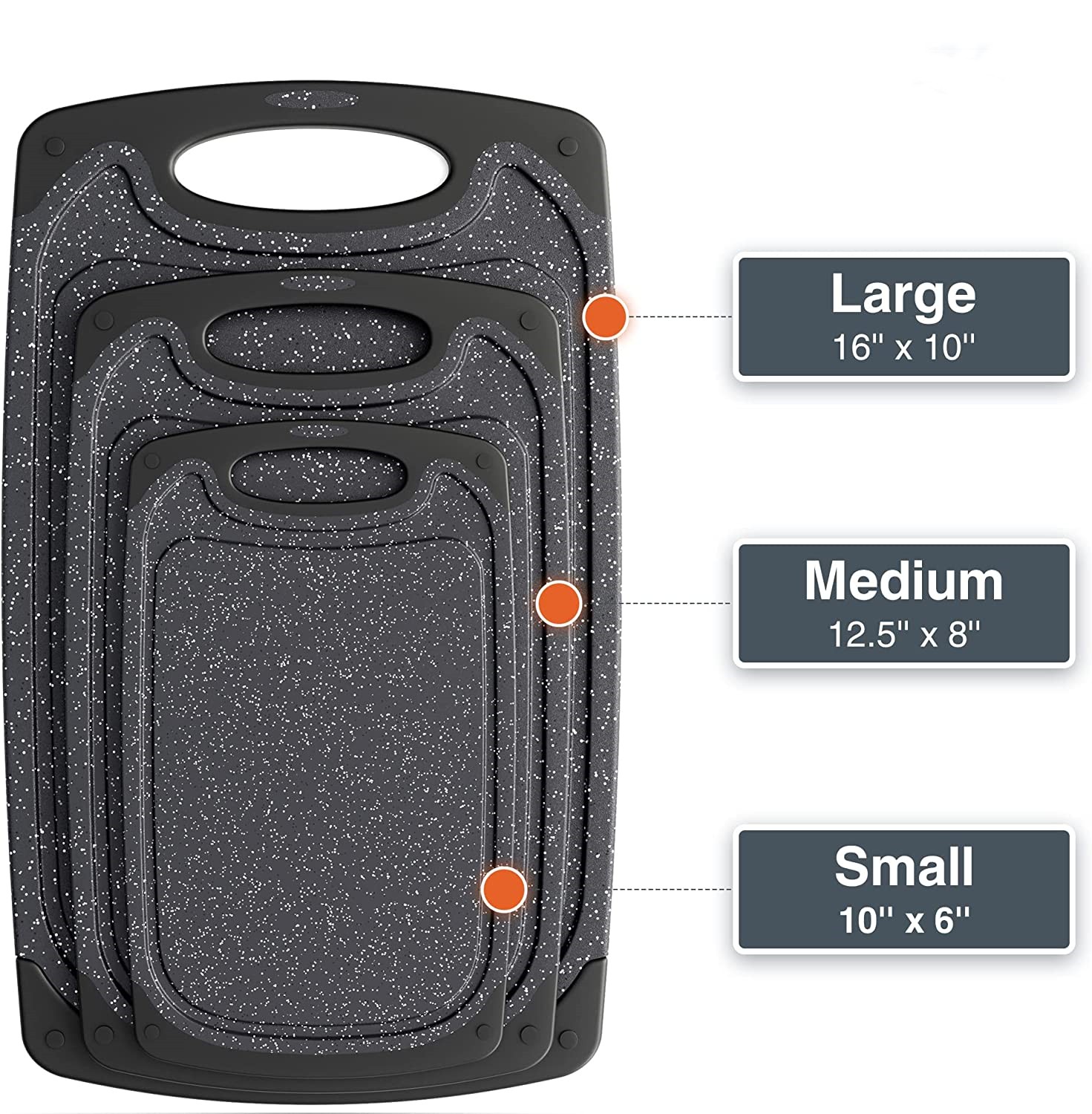 - Our Most Popular Set - 3 Chef Selected Sizes: Professional chefs and your family favorite cook agree that these dishwasher-safe cutting boards with juice groove combine the best of all worlds; a 10”x6” small cutting board for kitchen crumb defense, a 12.5”x 8” medium-large cutting board for prepping larger vegetables and meats, and a 16”x10” extra large cutting board; made for carving during memory-making get-togethers.