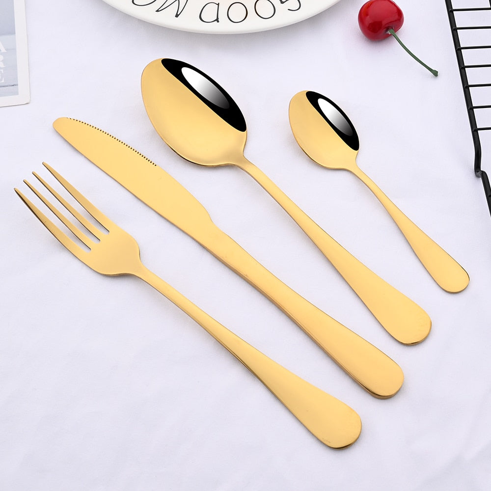 Our assorted cutlery set comes with four essential pieces: a knife, a fork, a spoon, and a teaspoon.