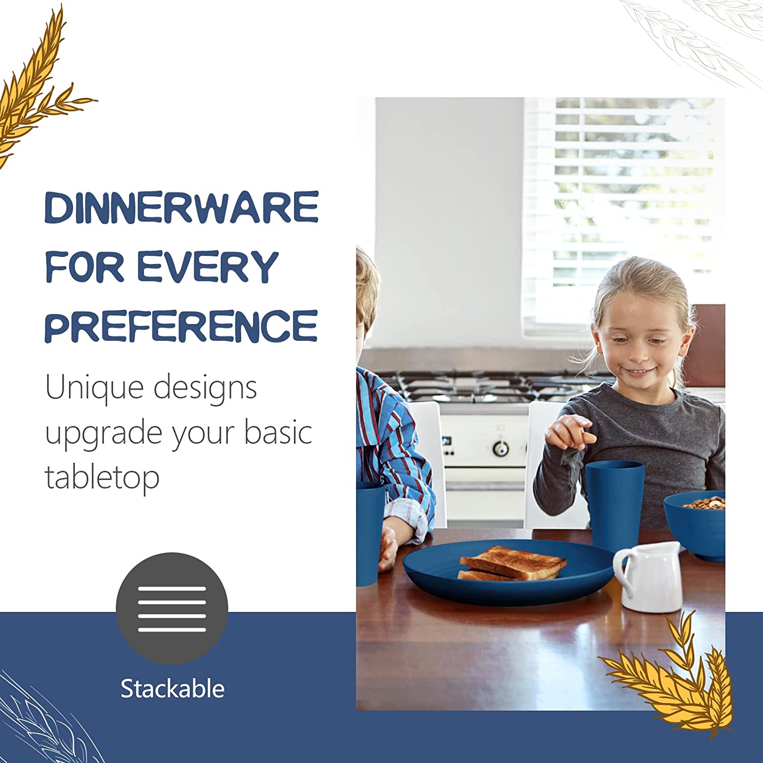 - PACKAGE INCLUDE: This wheat straw dinnerware sets include 32 pieces in total. Easy to match your existing flatware.